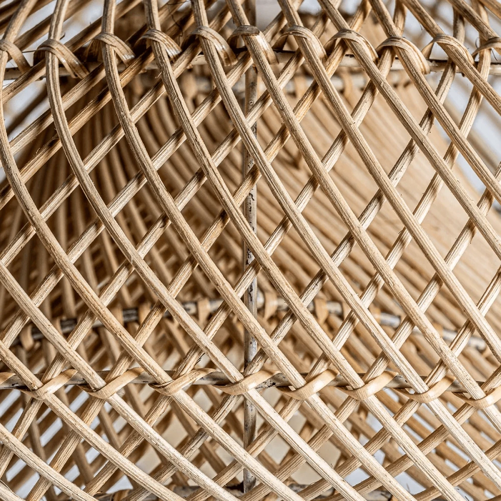 - A sua estrutura em rattan natural, habilmente entrelaçada, evoca uma sensação de leveza e organicidade, perfeita para adicionar um toque acolhedor e sofisticado a qualquer divisão.
