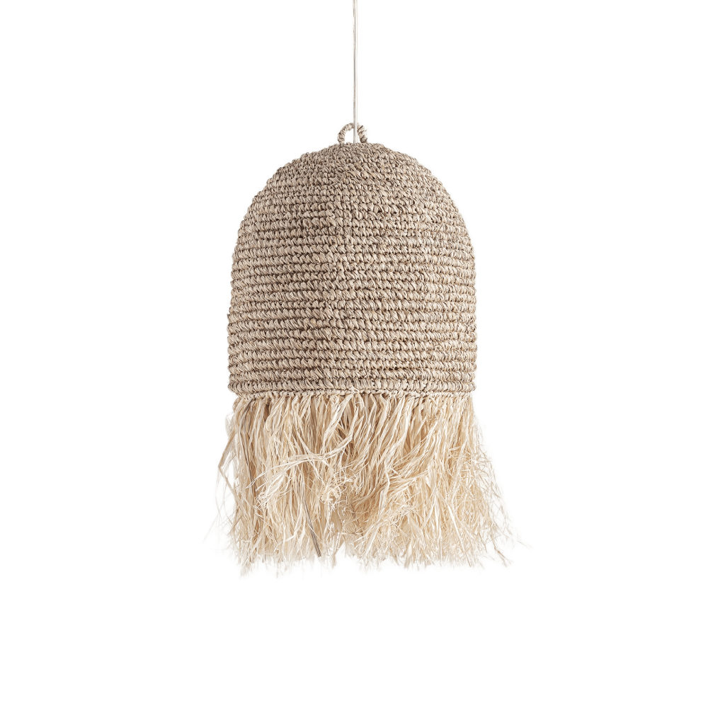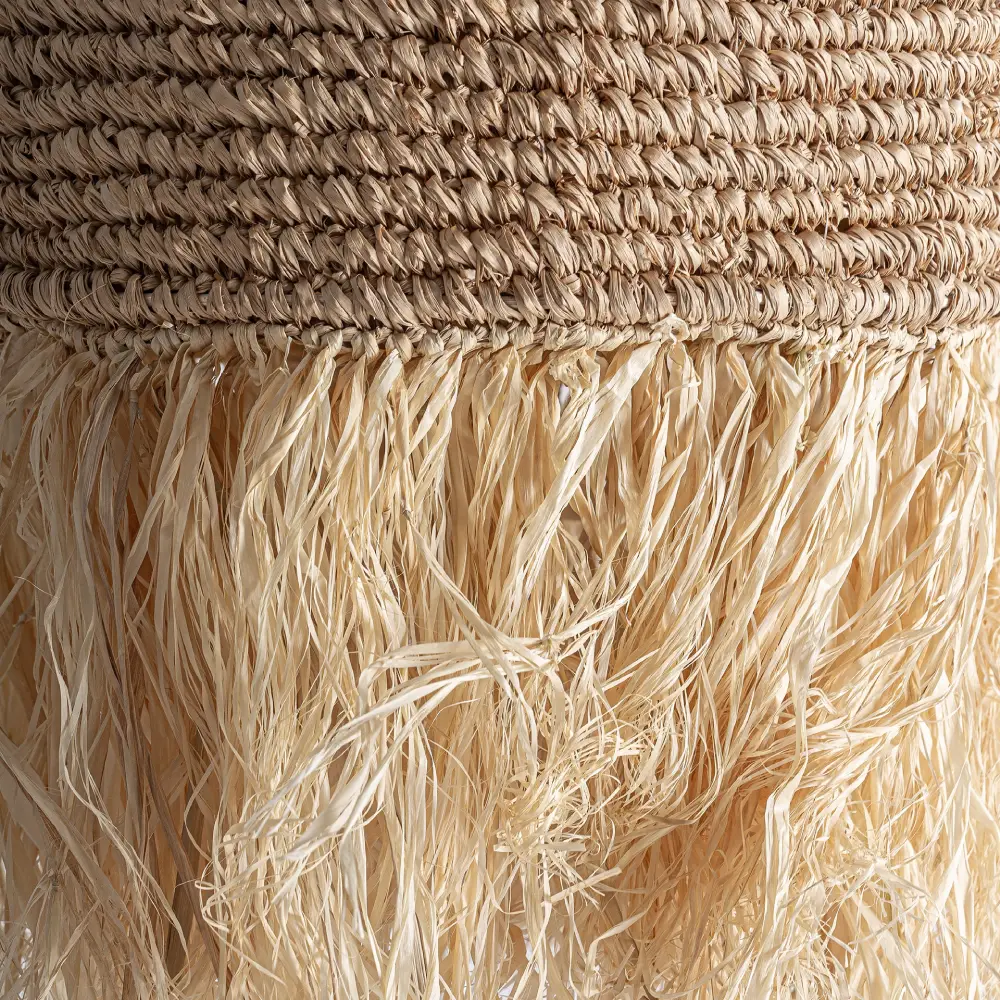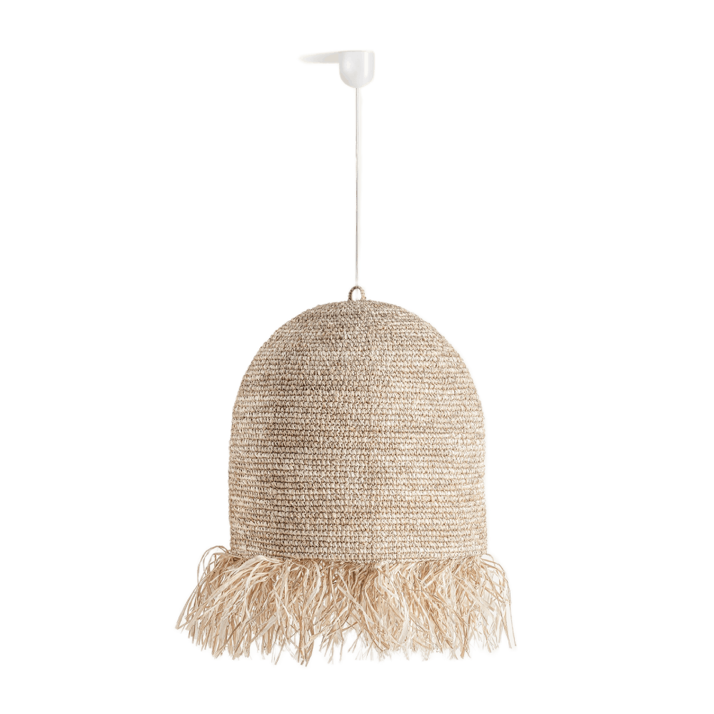 • Candeeiro de teto trançado bege com franjas e suporte branco