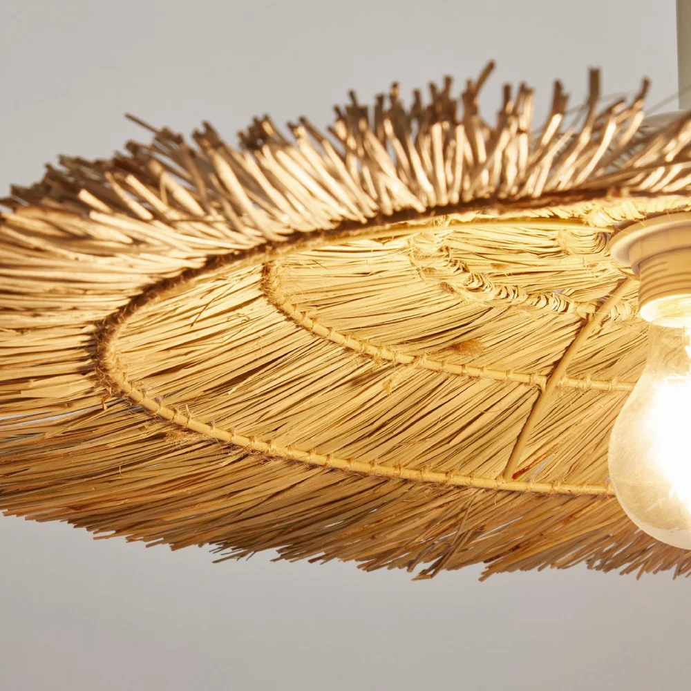 - Fabricado em fibras naturais entrançadas, oferece uma luz suave e difusa, ideal para iluminar ambientes de forma subtil e elegante.