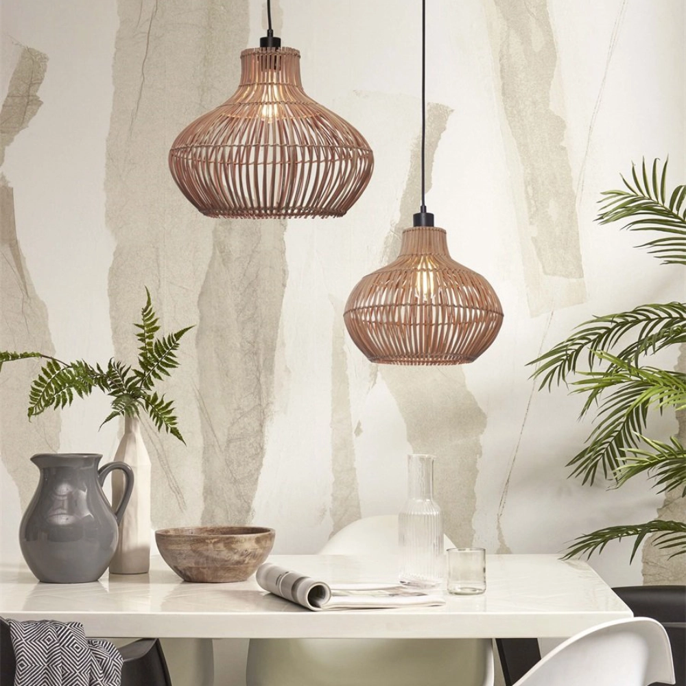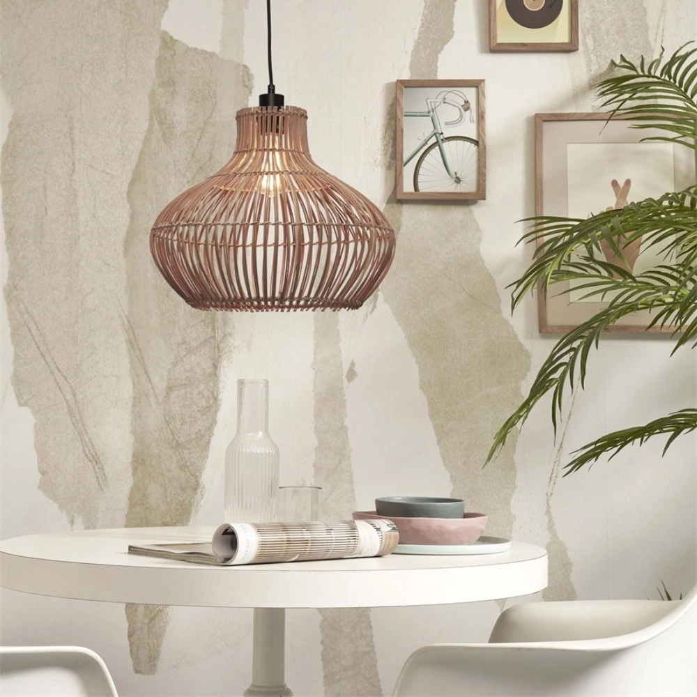 - Ideal para salas de estar, quartos ou zonas de refeição, permite criar uma iluminação quente e acolhedora, filtrada de forma subtil através da estrutura entrançada.