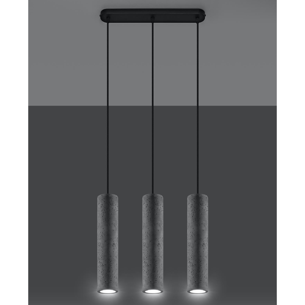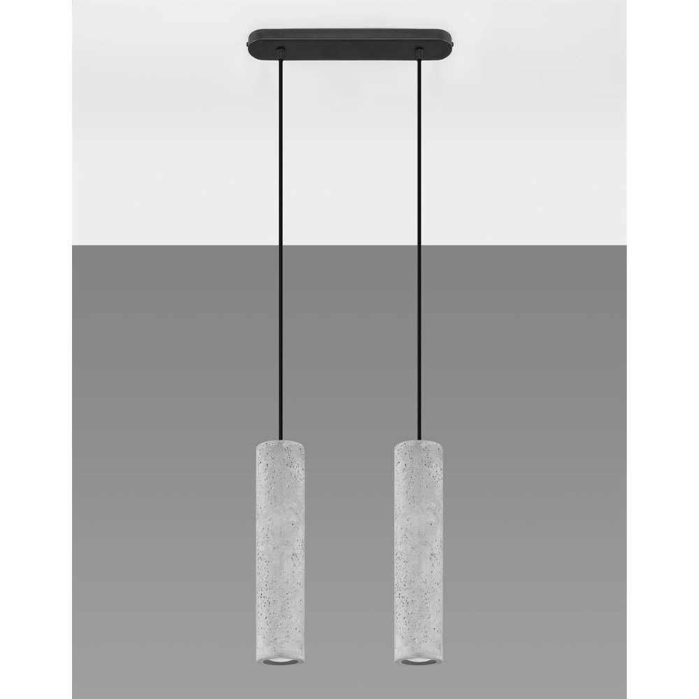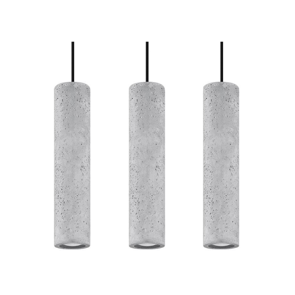 - O candeeiro suspenso Luvo apresenta uma forma cilíndrica simples em concreto natural, com acabamento mate e linhas retas.