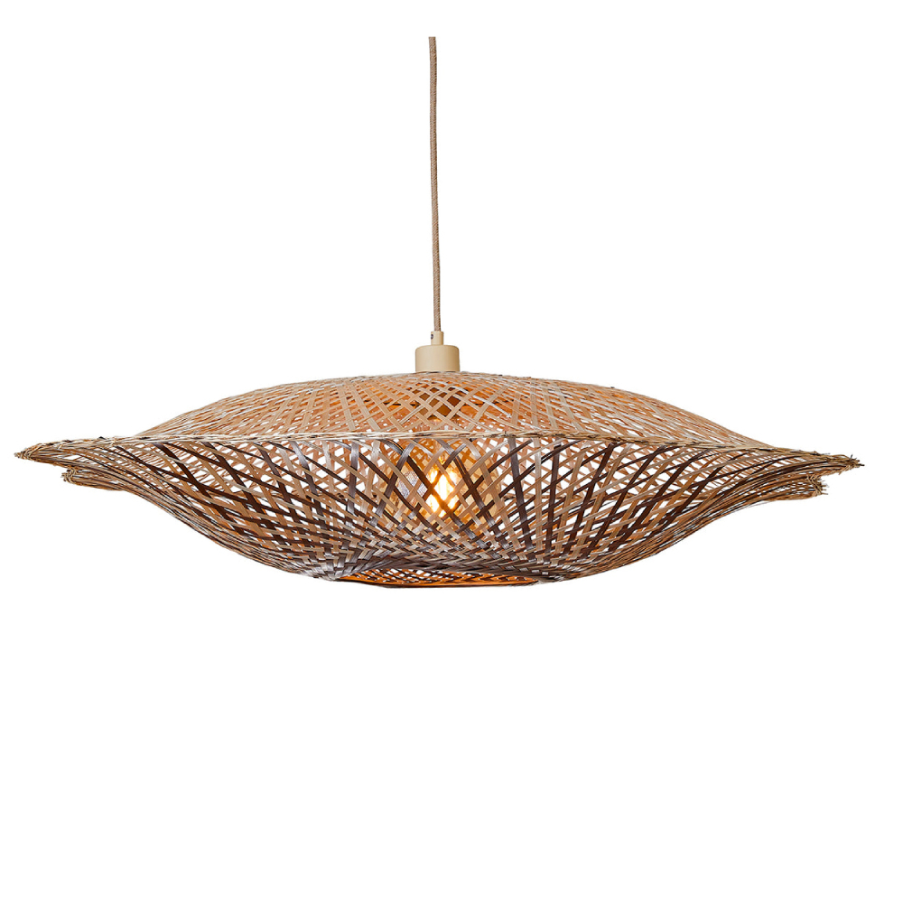 - O abajur é feito em dois tons naturais de bambu, o que cria um efeito lúdico.
