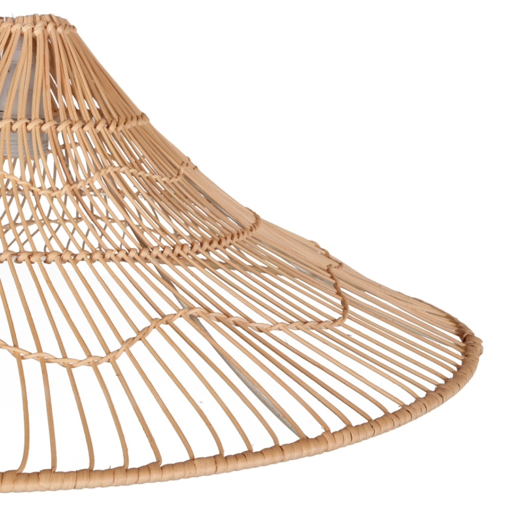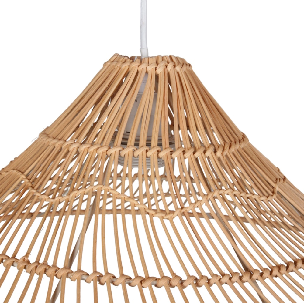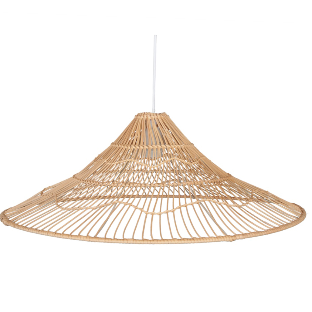 - Apresenta uma estrutura de linhas simples em rattan natural, criando um padrão de luz suave e acolhedor.