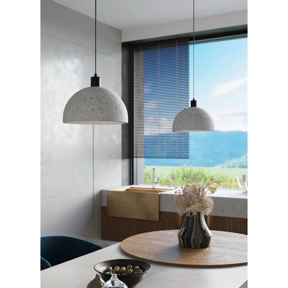 - O candeeiro suspenso Pablo combina uma silhueta ampla com a textura crua do concreto, oferecendo uma presença discreta mas marcante.