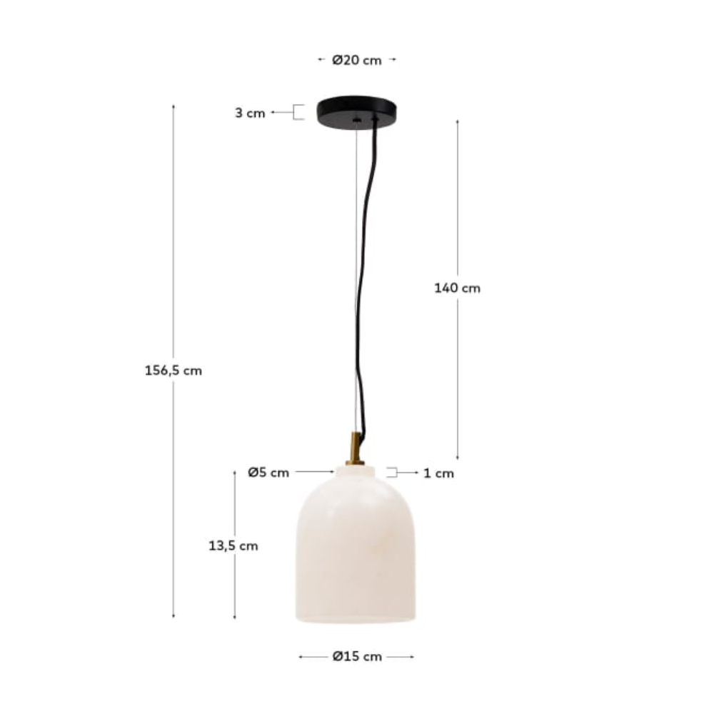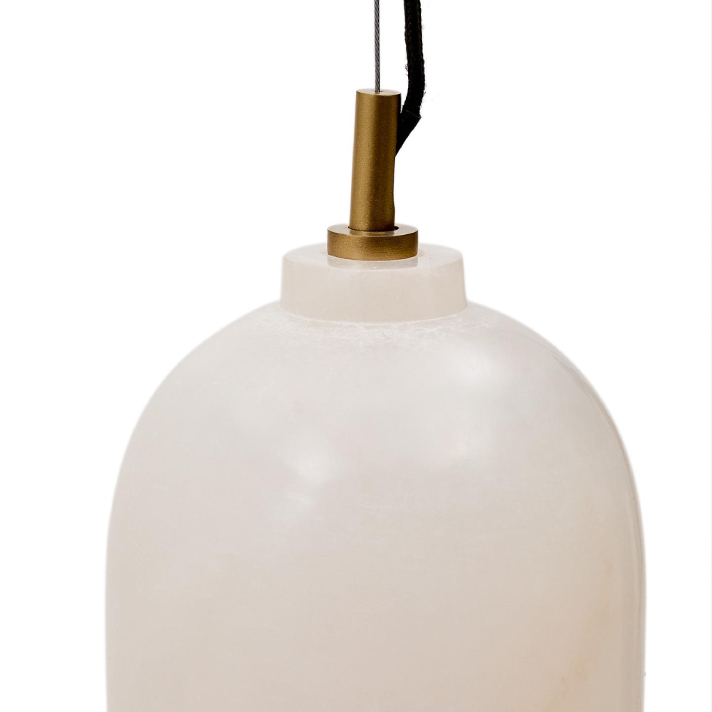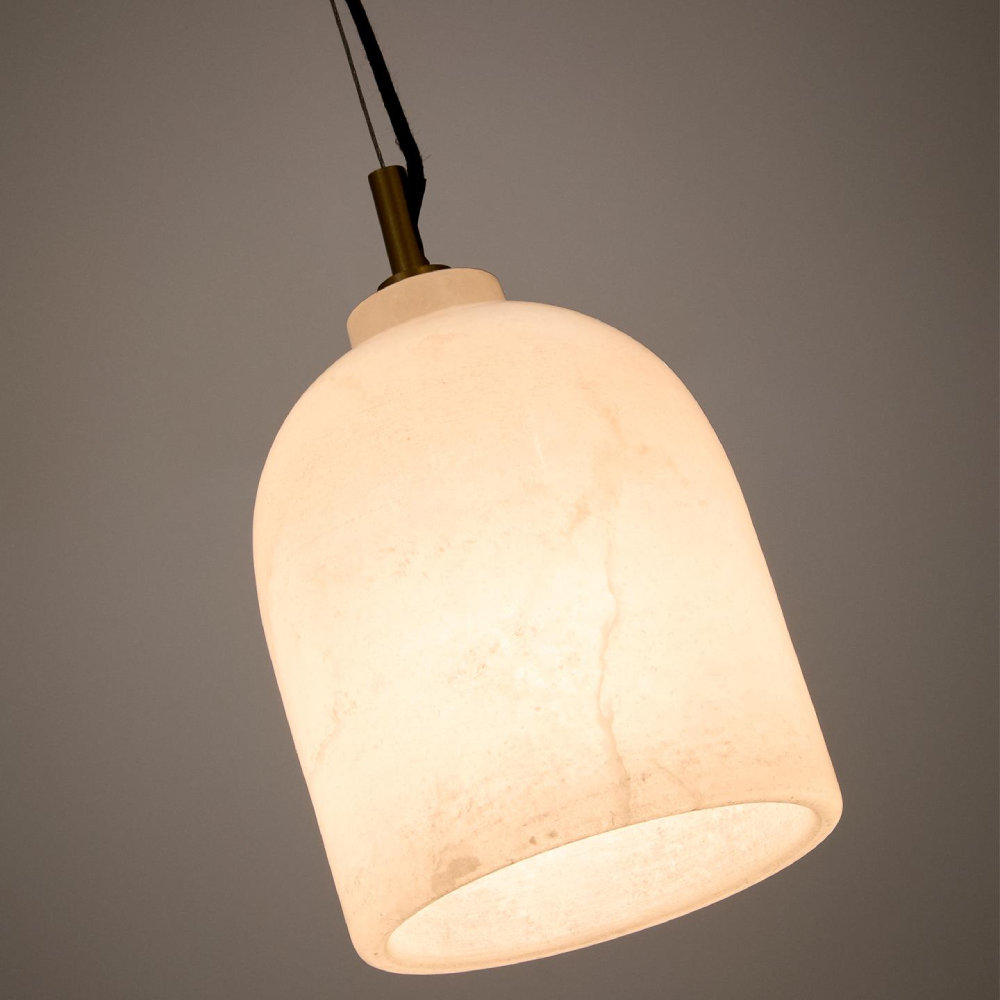 - O candeeiro de teto Shen destaca-se pelo seu corpo esculpido em alabastro branco, uma pedra natural que permite a passagem suave da luz, criando um efeito luminoso envolvente.