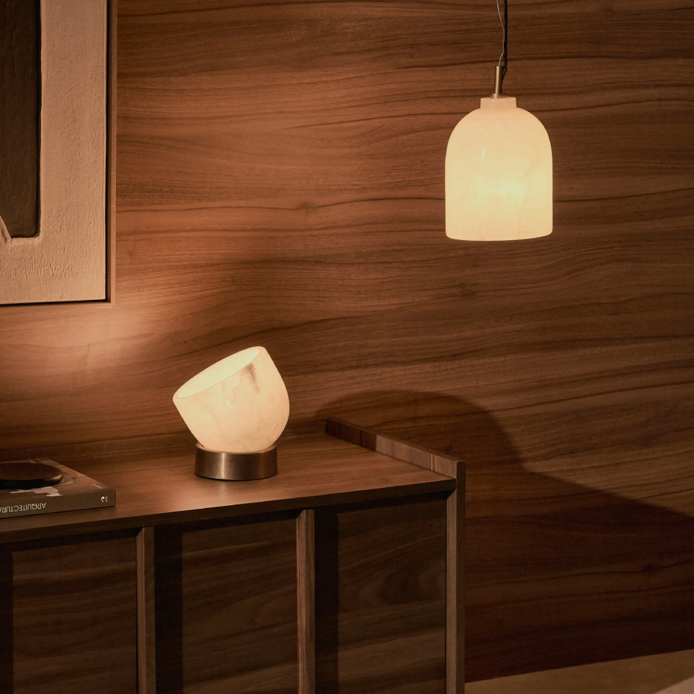 - O ambiente quente que a luz cria ao filtrar-se através do alabastro dará um toque acolhedor aos seus interiores.