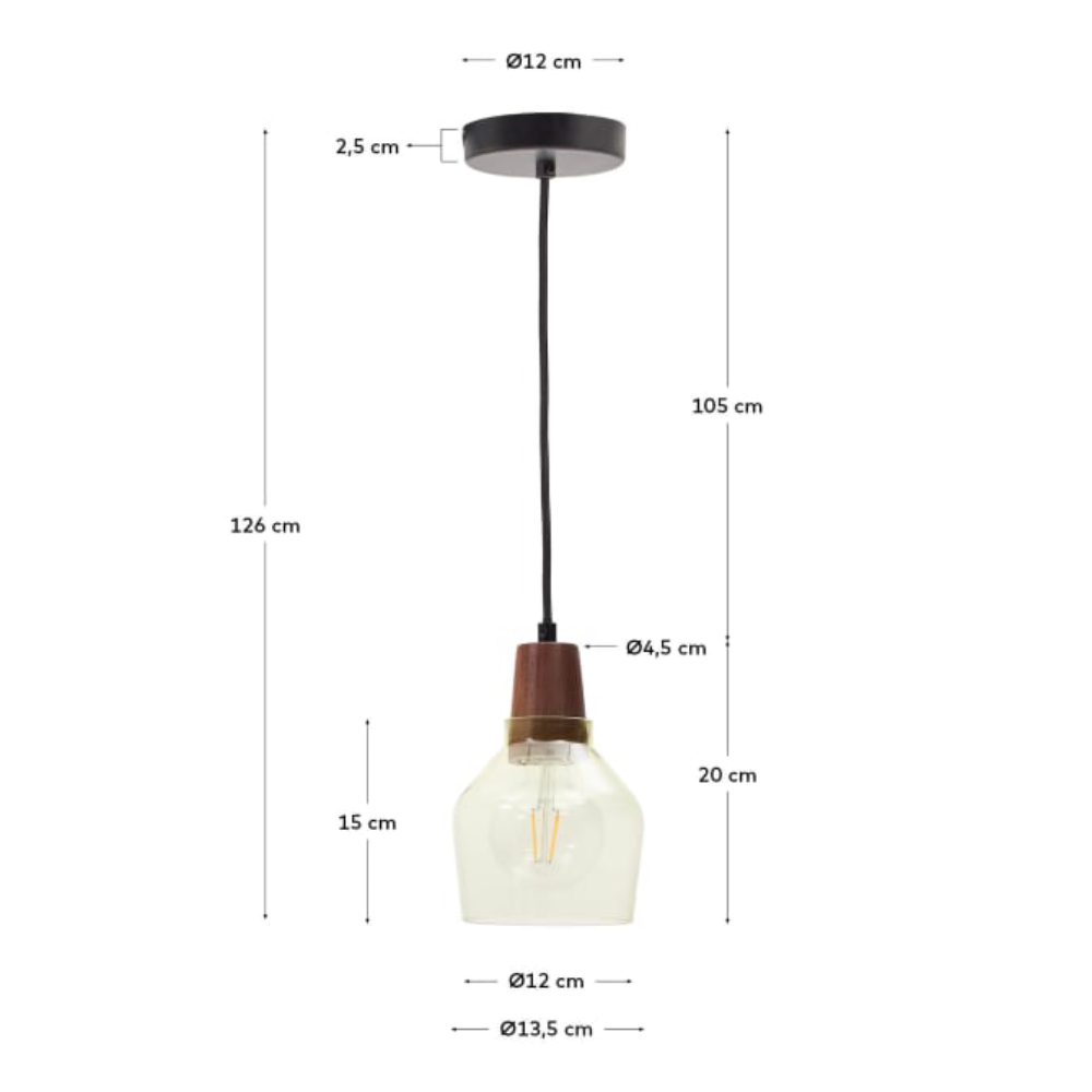 Candeeiro de Teto em Vidro e Nogueira Sille Ø13x15
