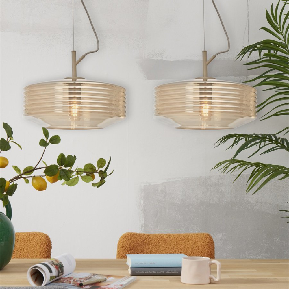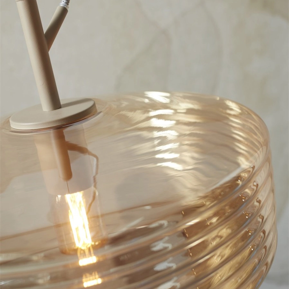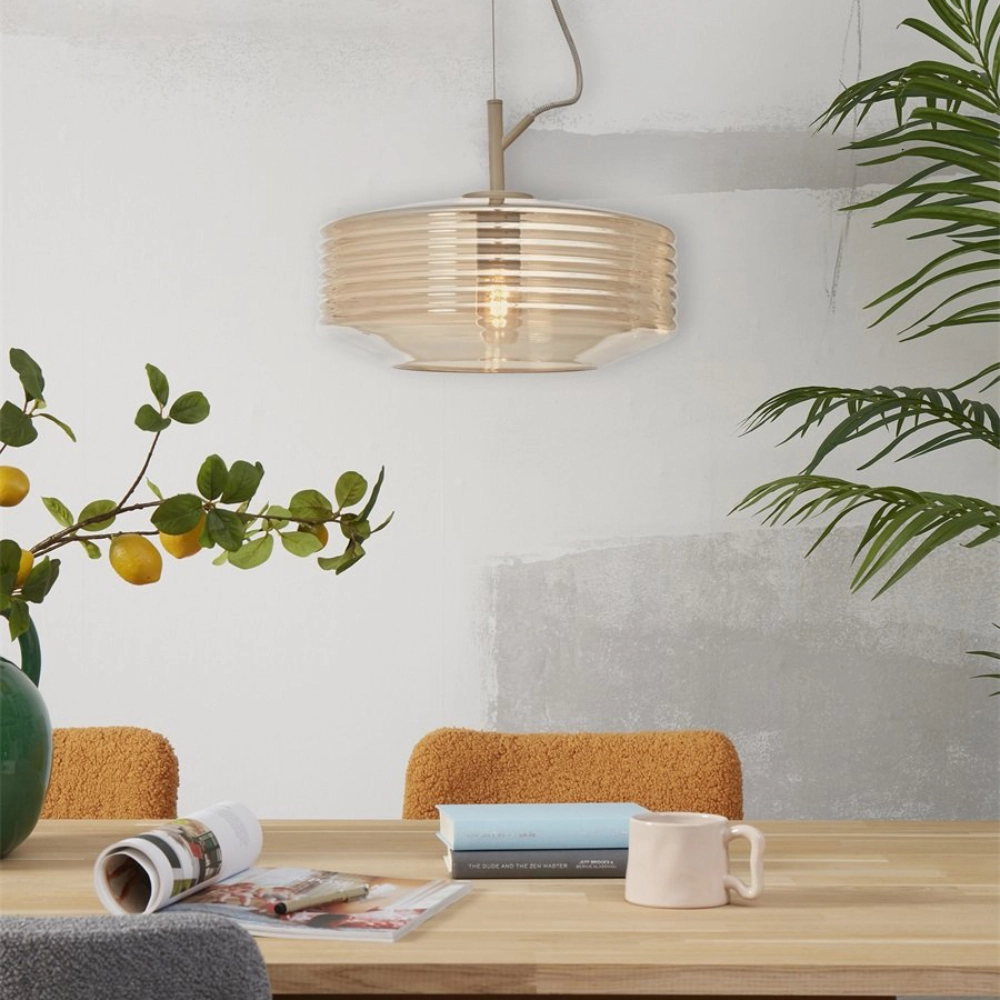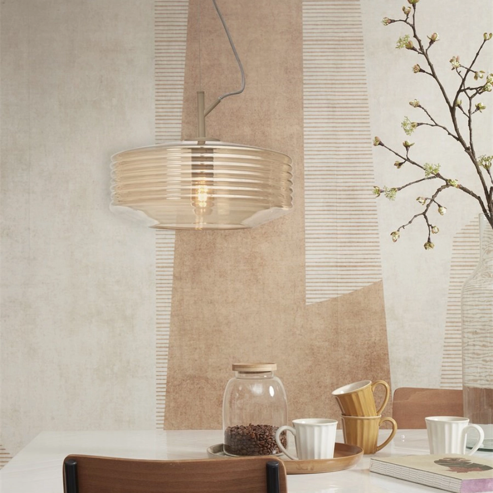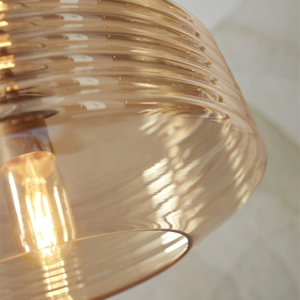 - O vidro âmbar adiciona um visual moderno e acolhedor a esta luminária atemporal.