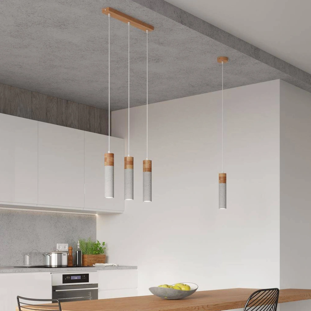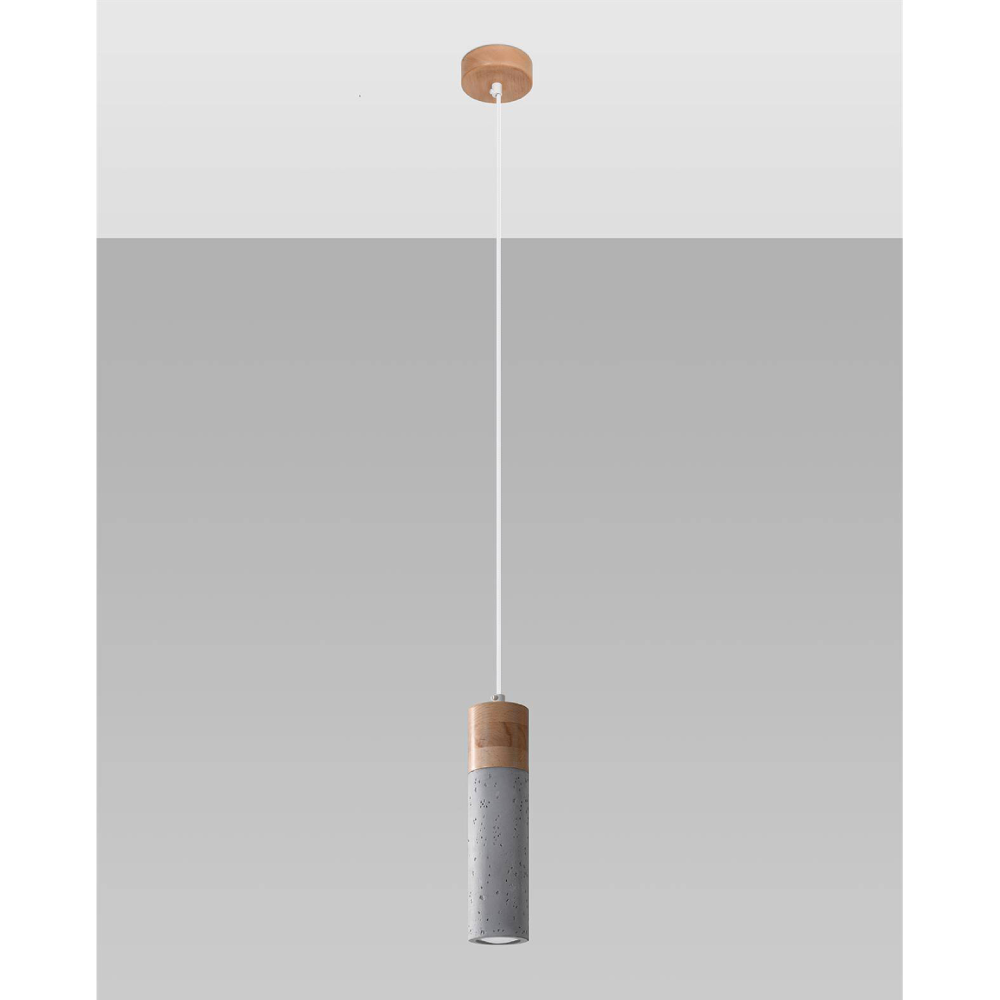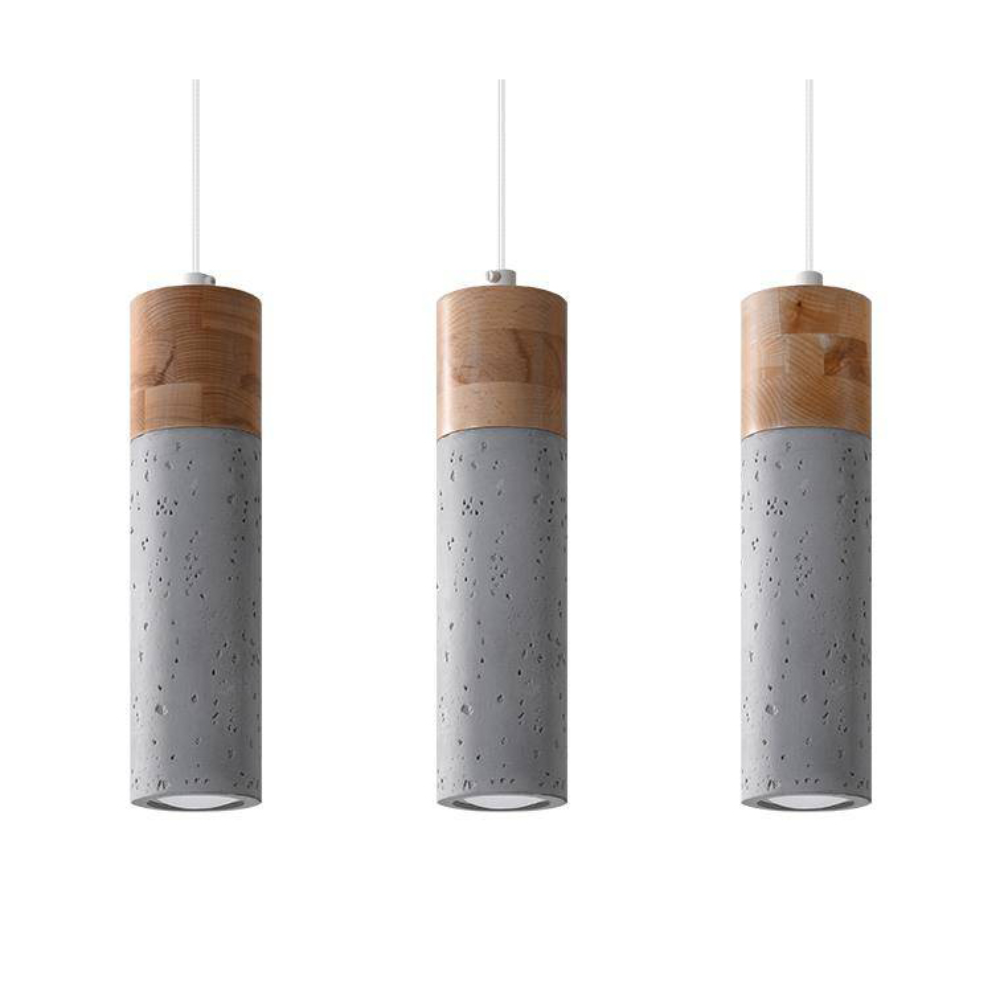 - O candeeiro suspenso Zanni combina madeira natural e concreto num corpo cilíndrico simples e elegante, com 30 cm de altura.