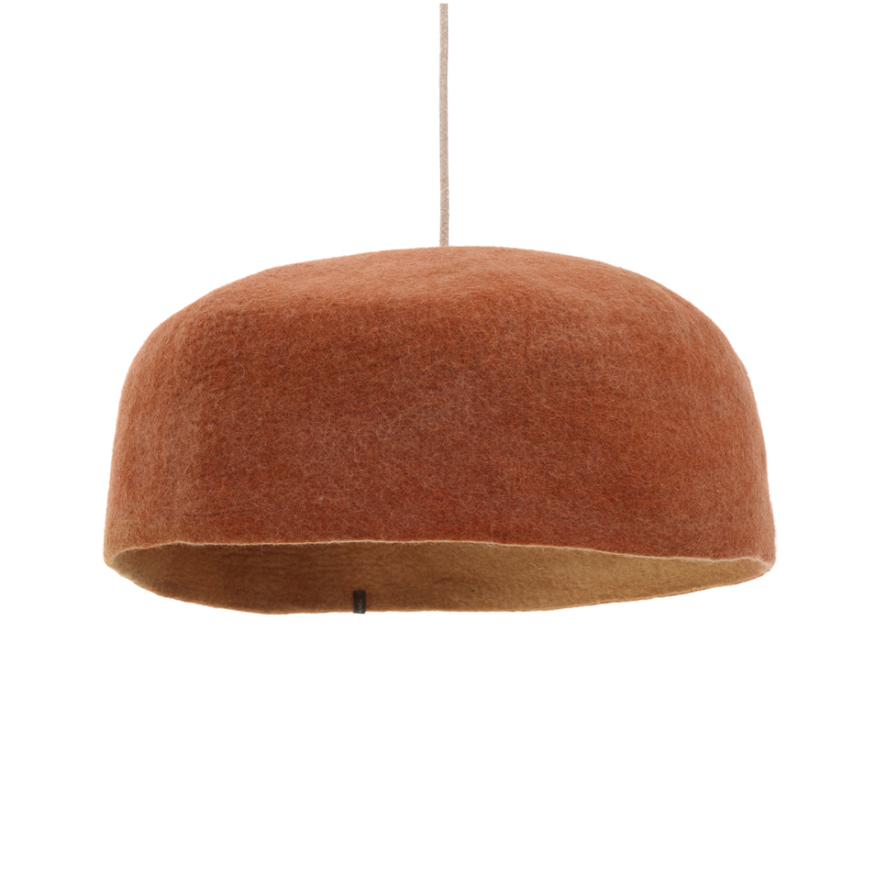 - O candeeiro de teto Yurte combina presença cromática com suavidade natural, numa peça reversível feita em lã feltrada artesanal.
