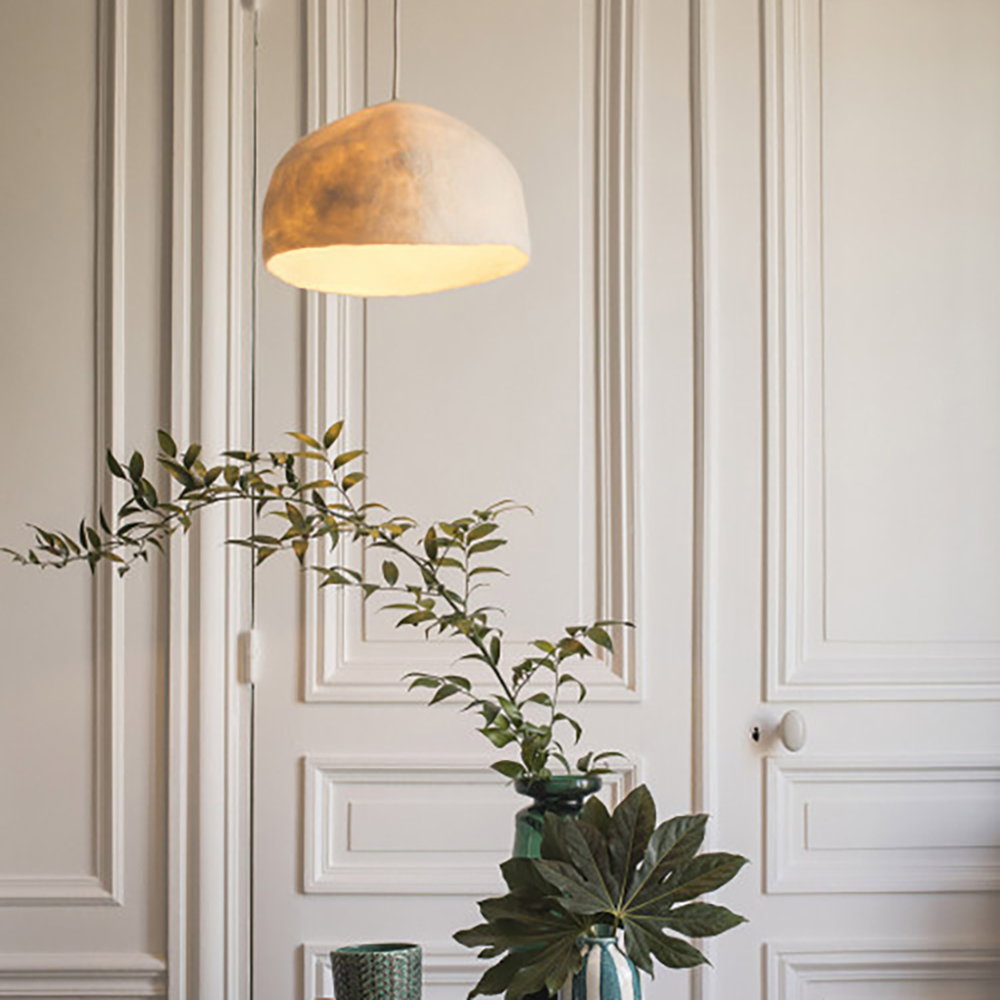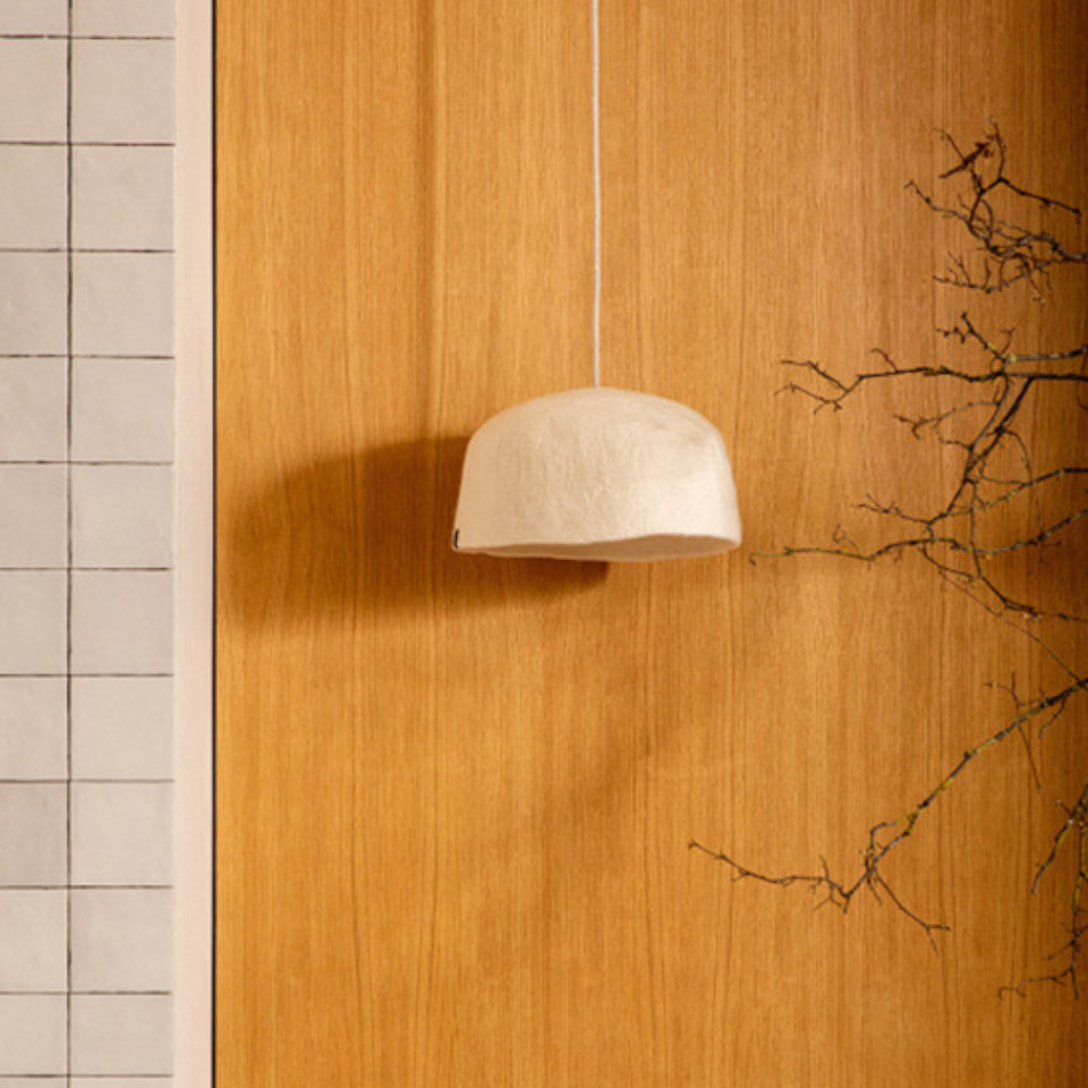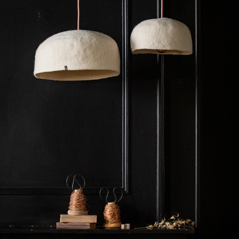 - O candeeiro de teto Yurte é uma peça compacta e reversível, inteiramente fabricada em lã feltrada natural.