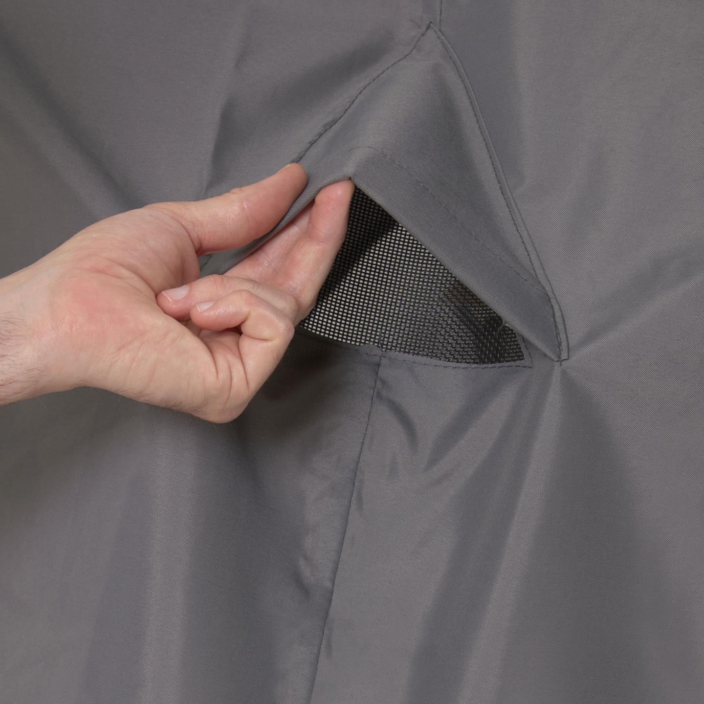 - Capa para mobiliário de exterior com costuras termosseladas e janela de ventilação para evitar a humidade, 100% Poliéster. Cor cinza.