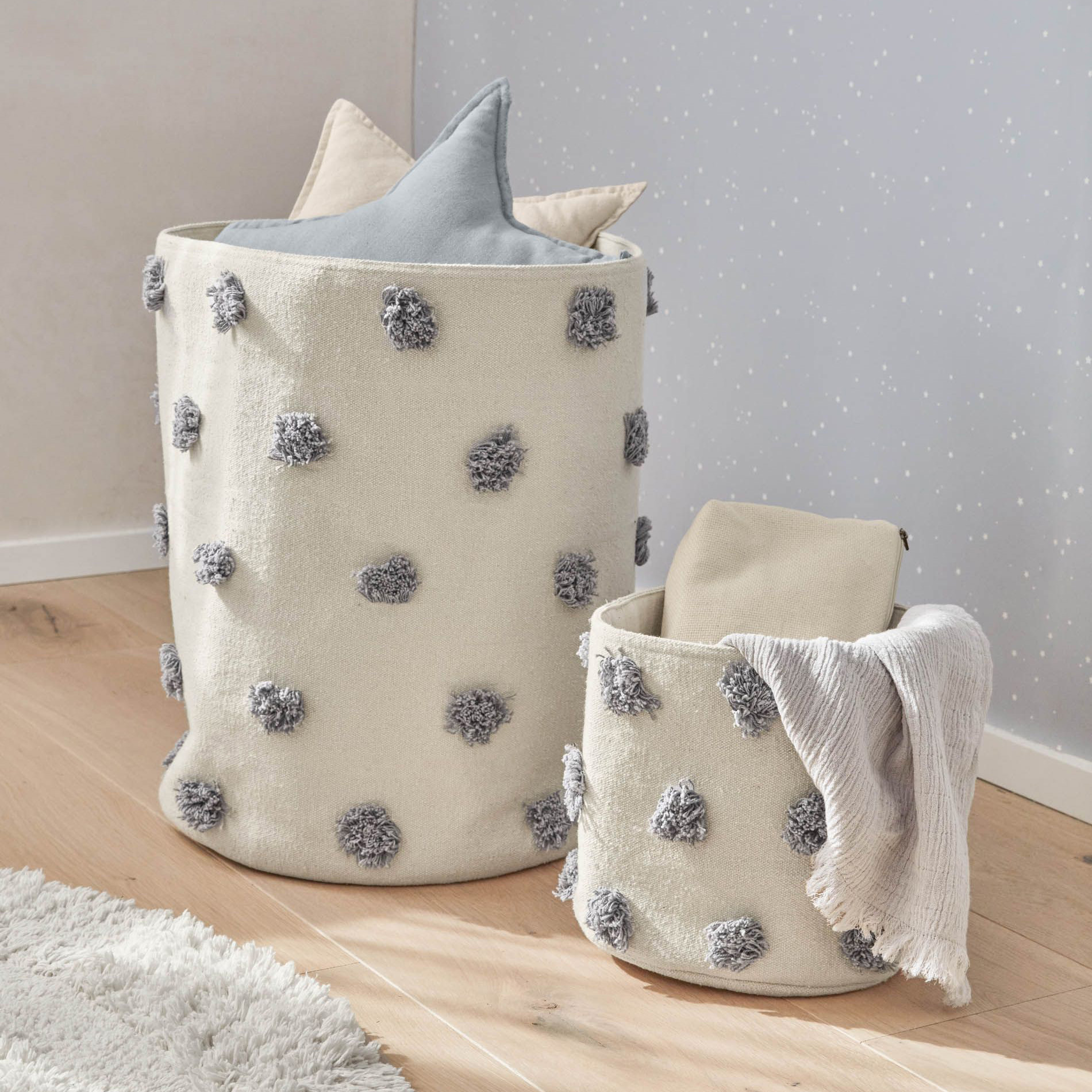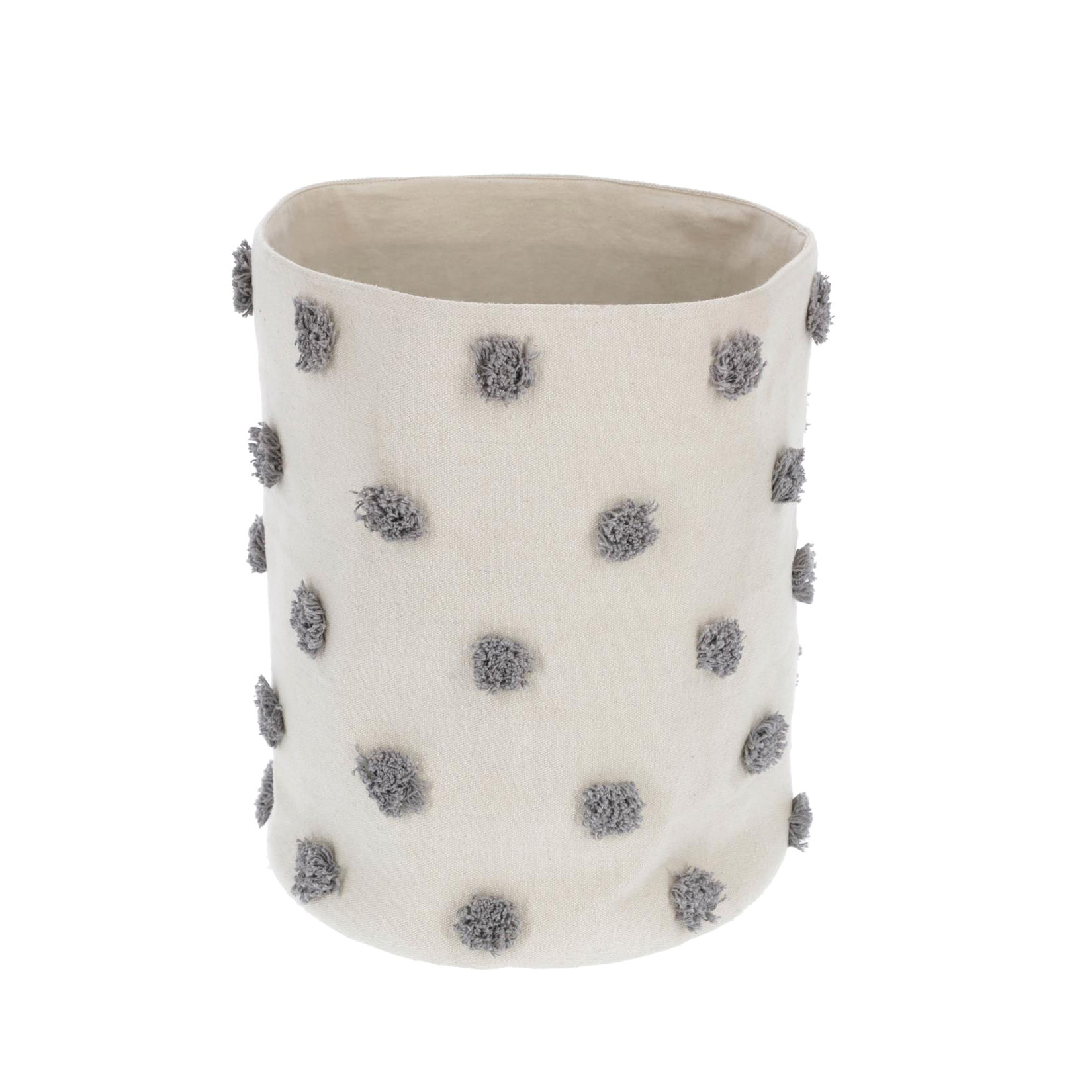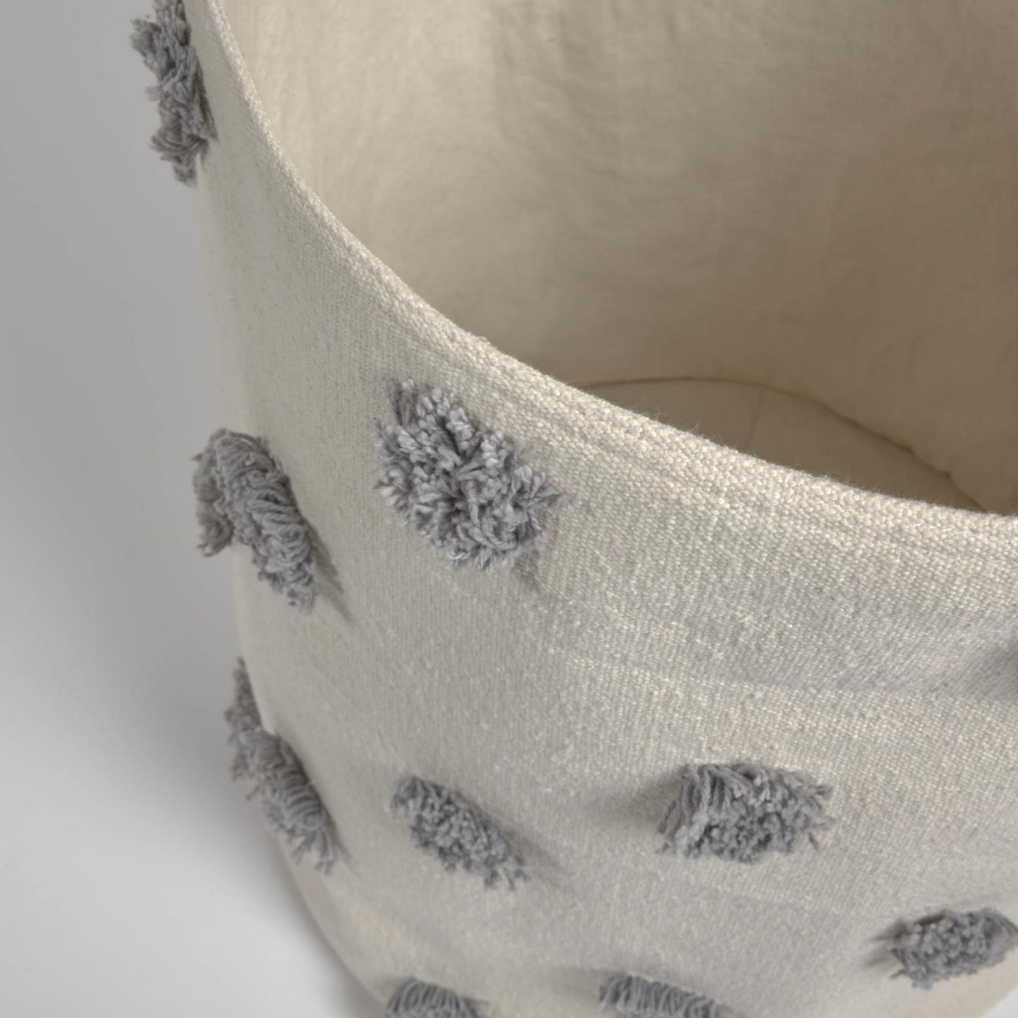 Cesto Khris, algodão, bege/cinza, Ø35x45 16,20 € 27,00 € Desconto de 40%. IVA incluído. Partilhar Comprar Contactar SKU: JG4AA6771J03 Cesto para colocar os brinquedos dos mais pequenos ou roupa suja. Detalhe de bordados cinza, em toda a volta, que o tornam também num acessório decorativo. Tecido em 100% de algodão. DIMENSÕES: Diam: Ø35cm Alt: 45cm CUIDADOS: Lavagem a frio, não usar água a uma temperatura superior a 30 º C e não usar dissolvente tetracloretileno. Não usar lixívia, secar na máquina ou engomar. Tags saldos