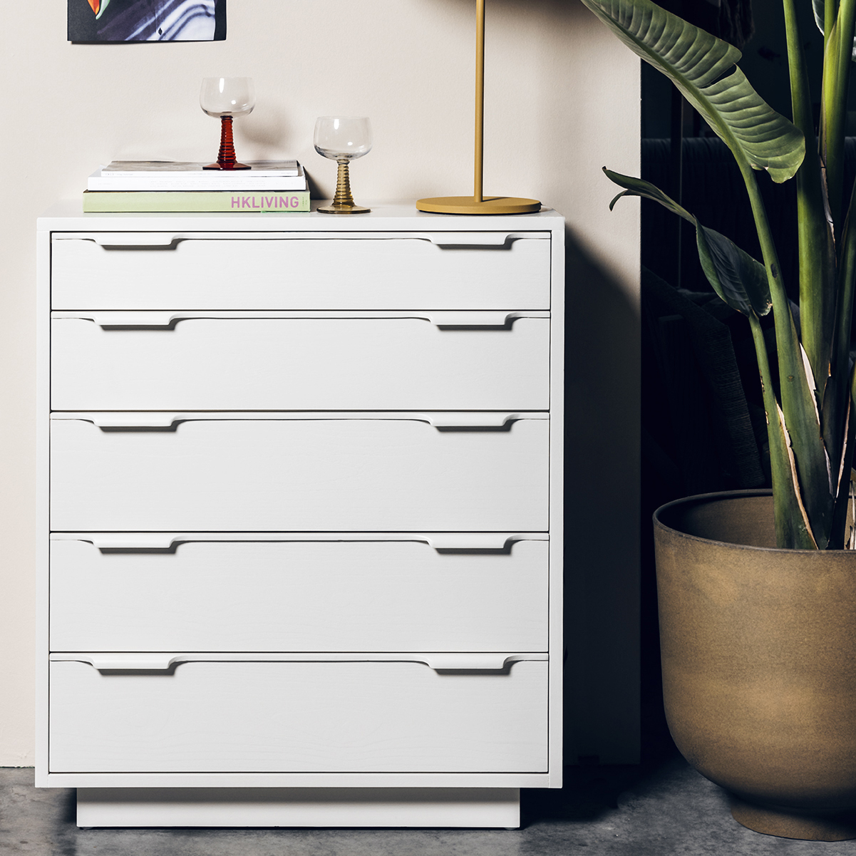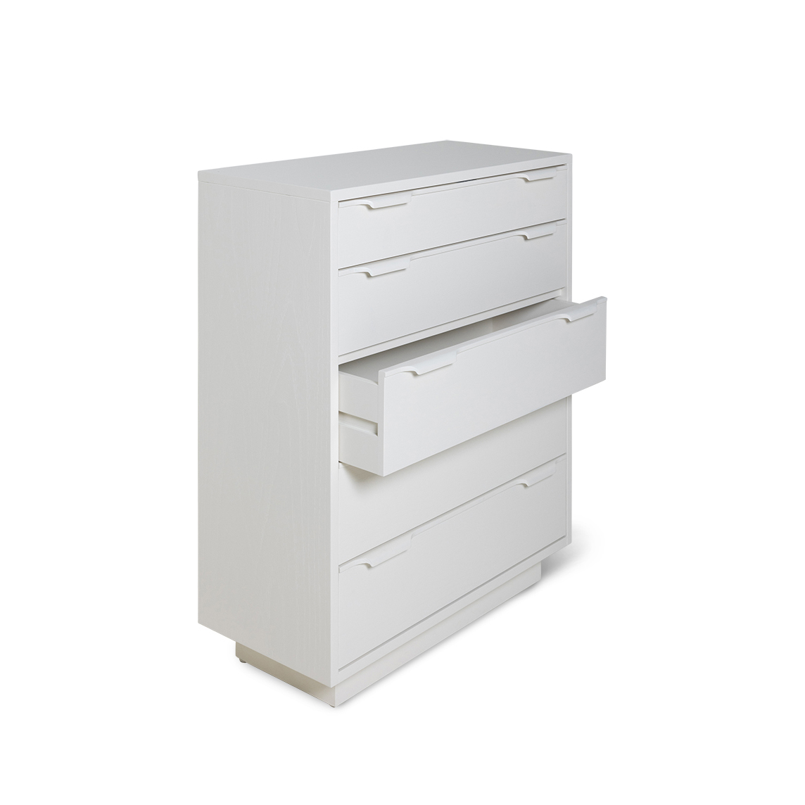 - Com cinco gavetas espaçosas e puxadores embutidos, o design clean e atemporal proporciona um visual harmonioso, perfeito para compor quartos, salas ou escritórios.