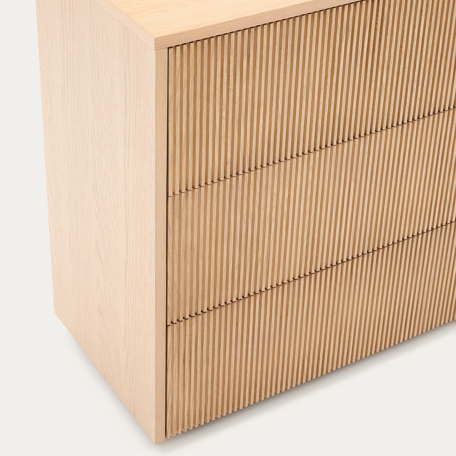 - Estrutura em MDF e chapa de carvalho com acabamento natural.