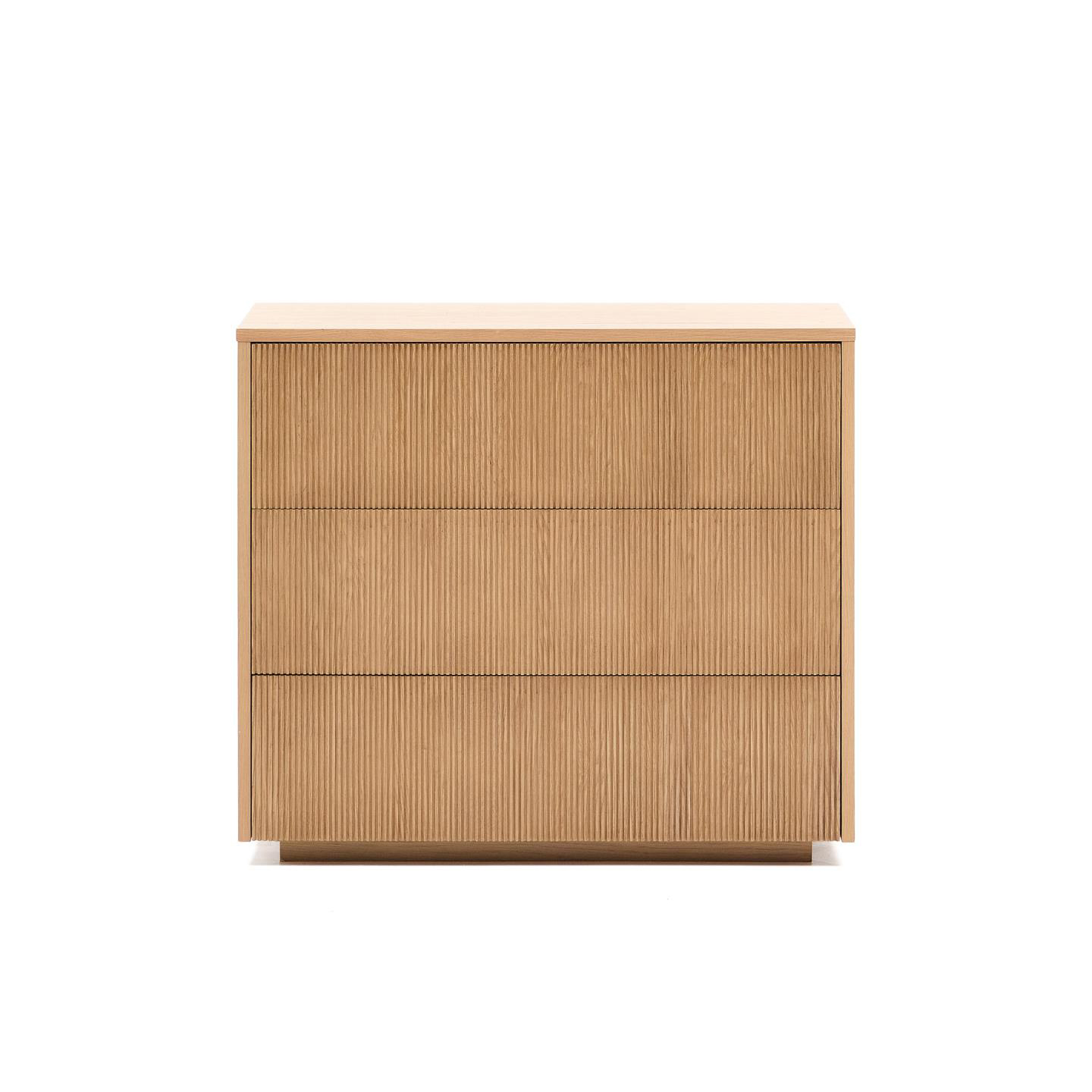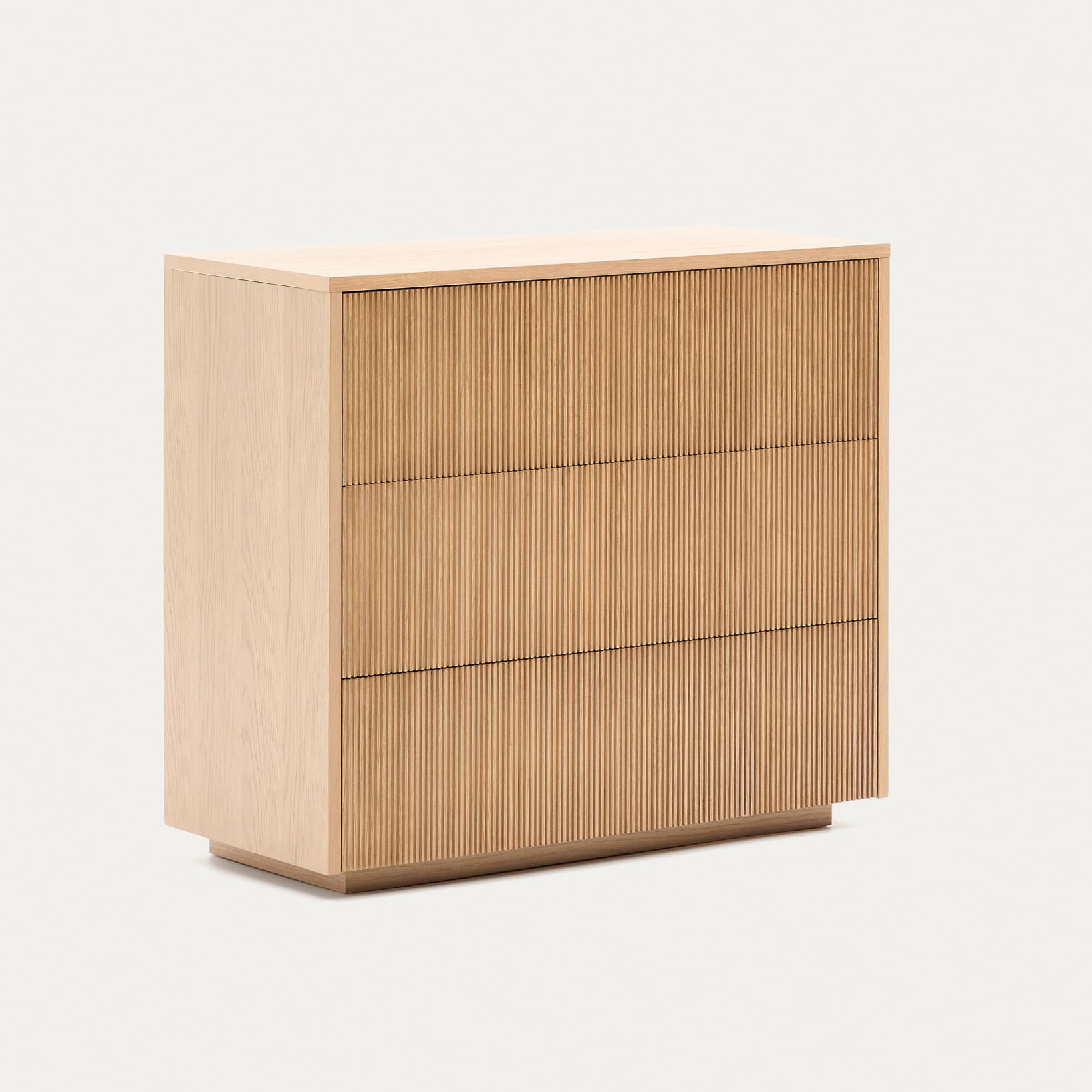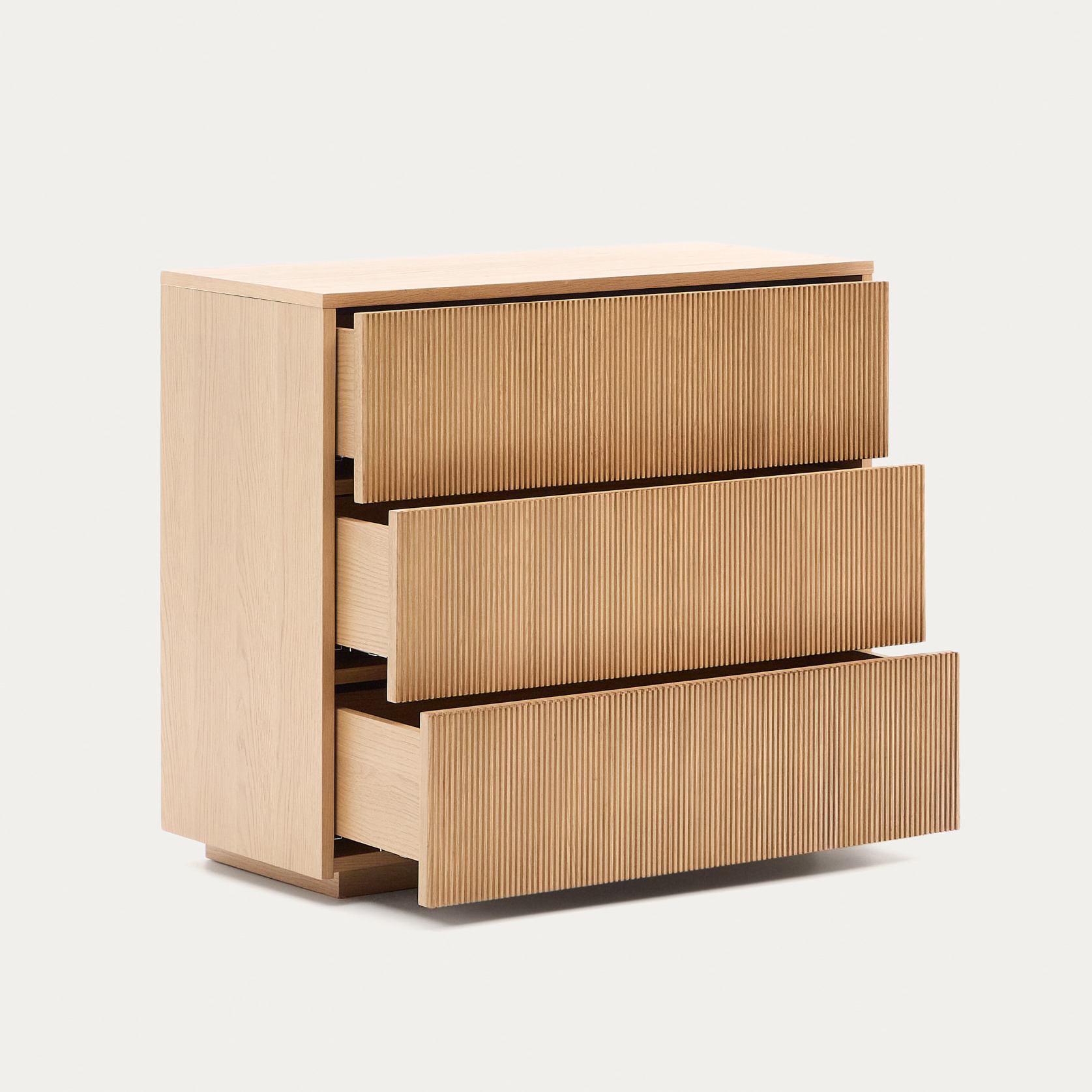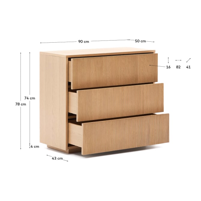 - Três gavetas com abertura por pressão e calhas ocultas reguláveis.