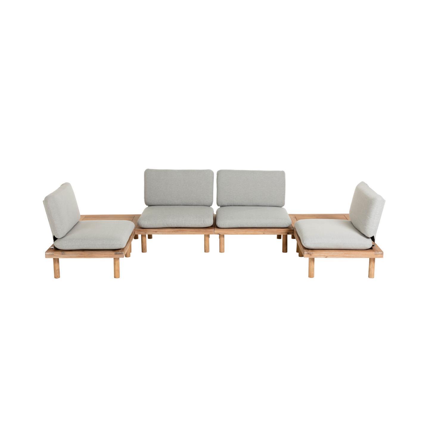 - O conjunto Virdis é composto por 4 cadeirões com almofadas resistentes à água e 2 mesas em madeira maciça de acácia.