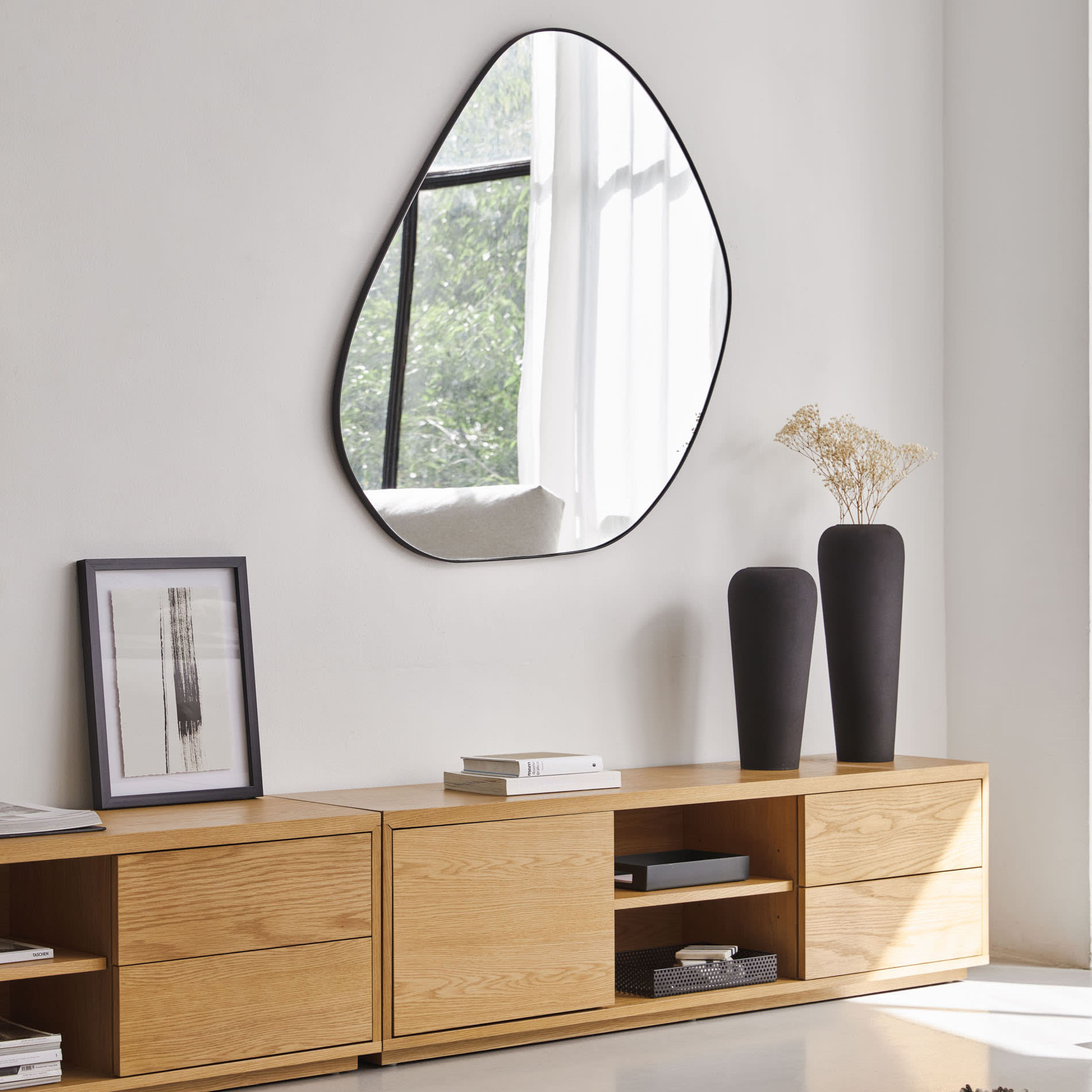 Espelho Aneras, metal, 84x108 149,00 € Desconto de %. IVA incluído. Partilhar Comprar Contactar SKU: JG4YG0162R01 O espelho de parede Aneras, destaca-se pela seu design versátil que se adapta a qualquer estilo. Com forma assimétrica, tem um contorno irregular que permite colocá-lo na posição que preferir. Além disso, conta com uma moldura muito fina, pelo que aumentará a sensação de amplitude nos seus interiores. Moldura de metal com acabamento em preto. Suporte na parte de trás do espelho para pendurar na parede. DIMENSÕES: Comp: 84cm Larg: 108cm Alt: 2cm Tags preto Envio grátis com agendamento Prazo estimado: 2 a 3 semanas Características