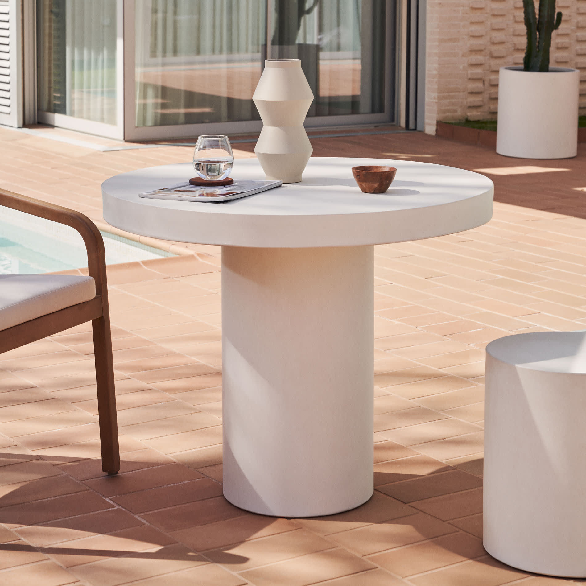Mesa Aguabrava, exterior, cimento, branco, Ø90x75