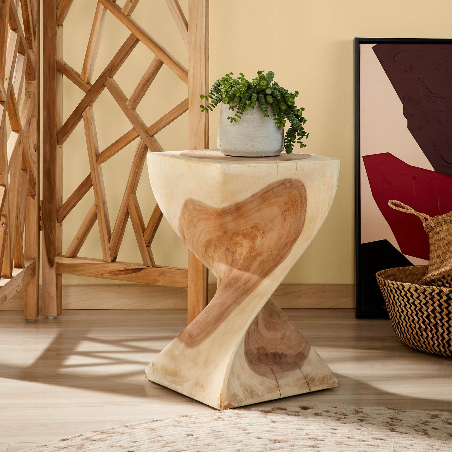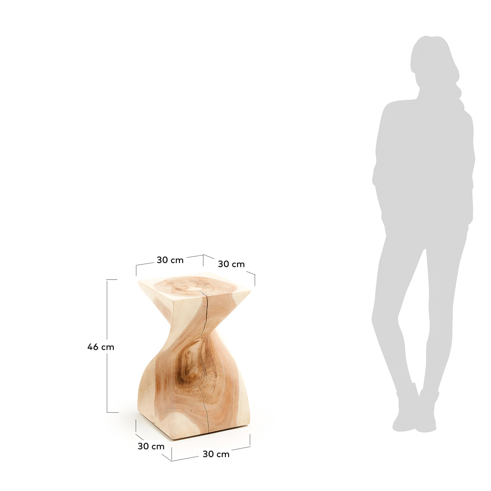 - Material do tampo: Madeira de árvore da chuva (Albizia Saman)