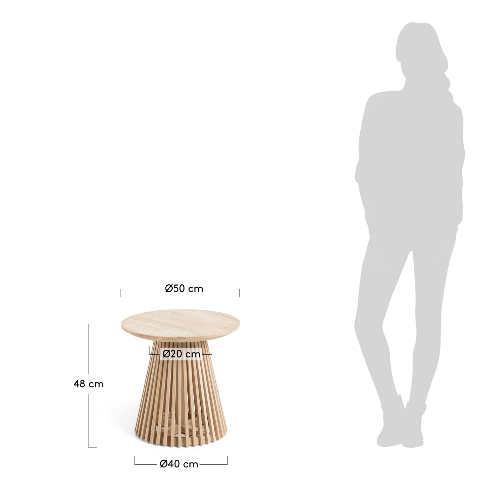 - Material do tampo: Madeira de teca (Tectona grandis)