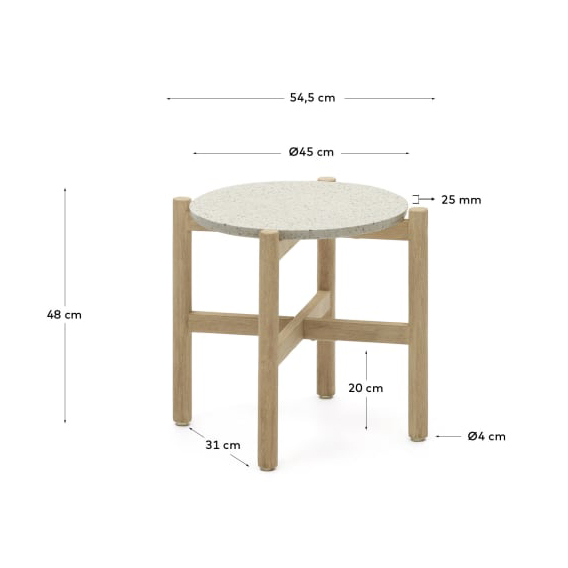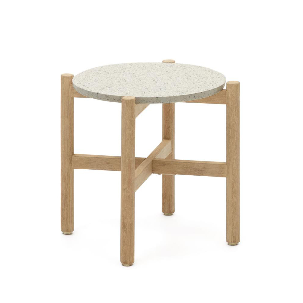 Mesa de apoio Polani, exterior, madeira/terrazzo