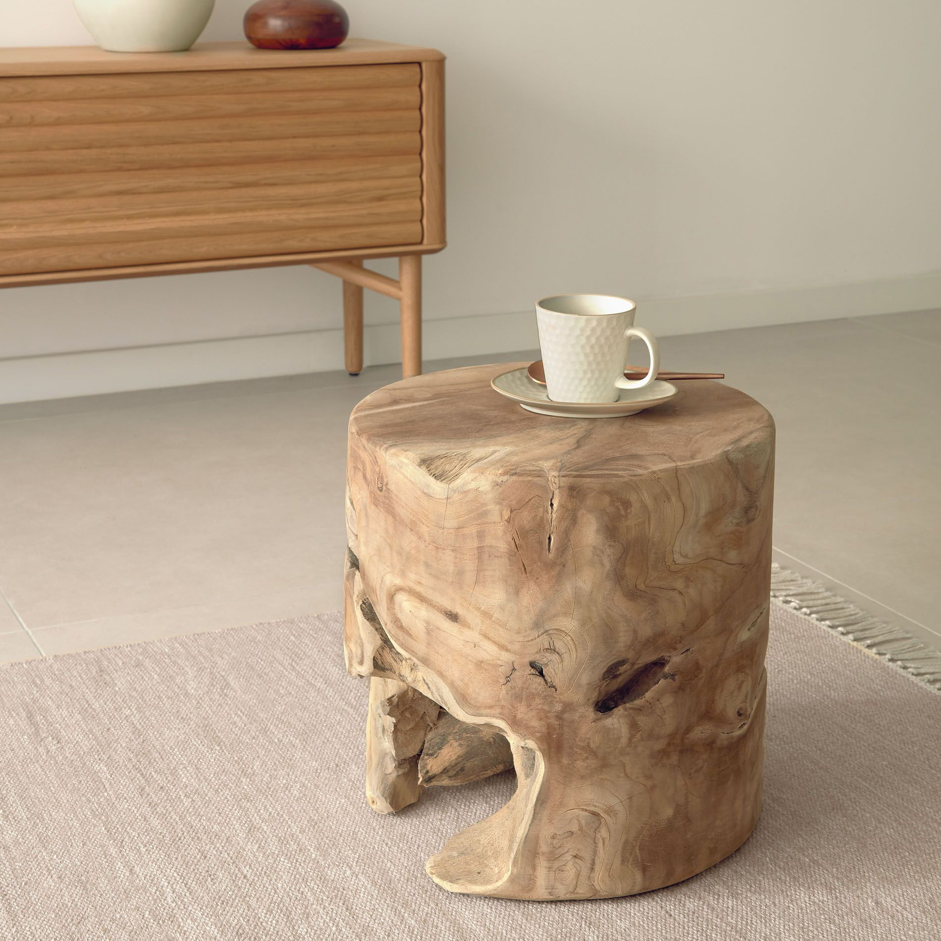 Mesa lateral Tropic, madeira teca, Ø35x35