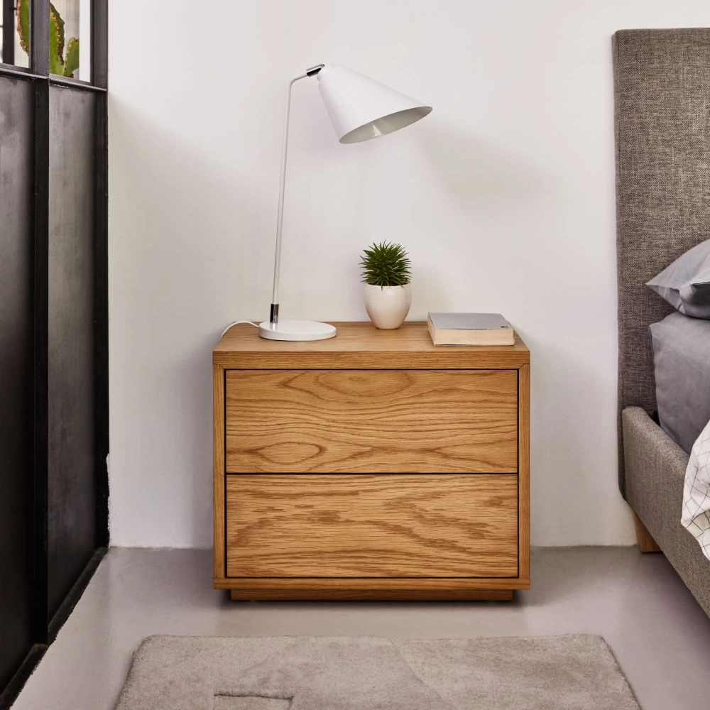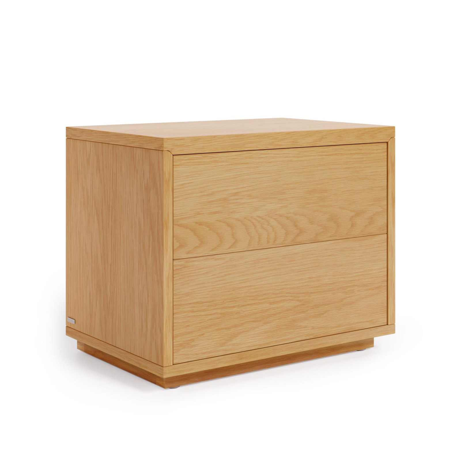 - Material das gavetas: MDF E0 (painel de fibra de densidade média com baixas emissões de formaldeído classe E0), Chapa de carvalho (Quercus alba)
