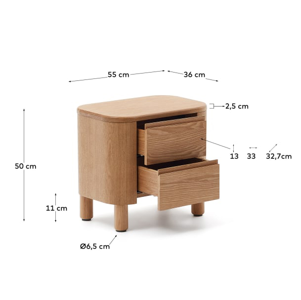 - Duas gavetas com sistema de fecho suave em chapa de freixo.