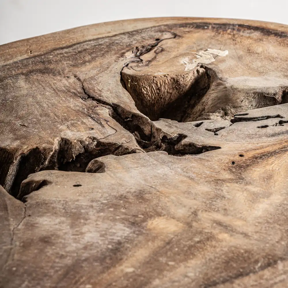 - O seu desenho orgânico e a estrutura vazada revelam a textura e o movimento da madeira, transformando cada exemplar numa peça única.