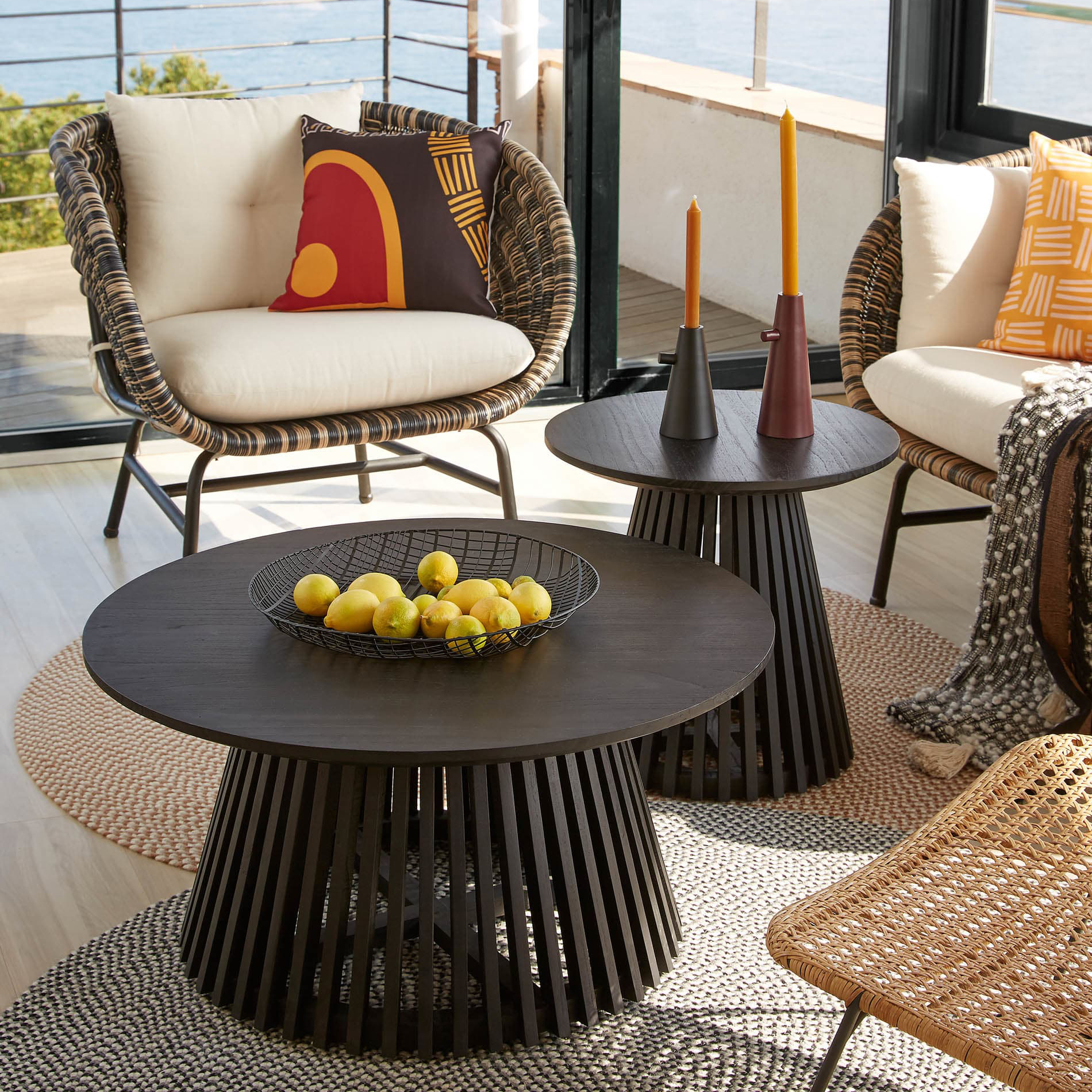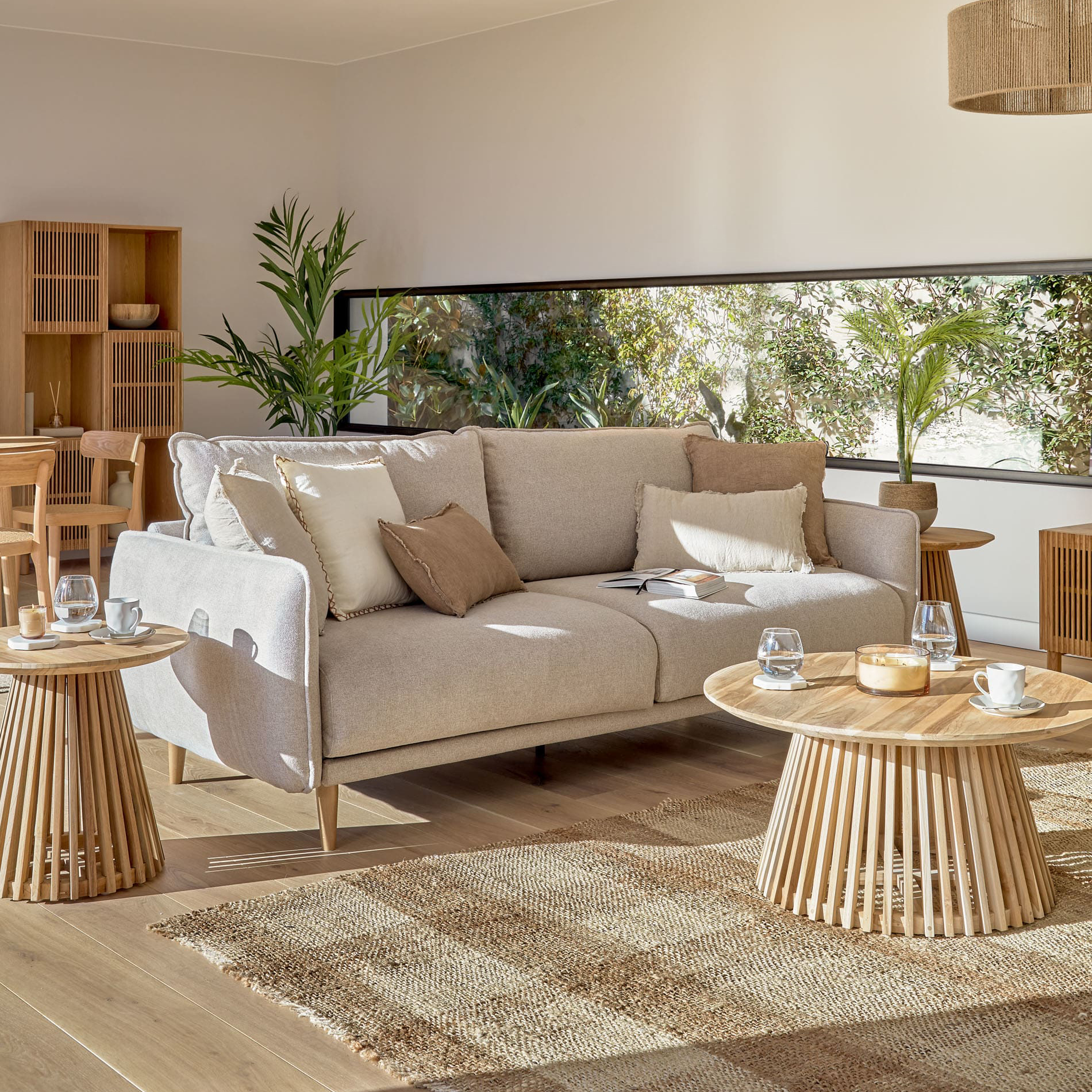- Estrutura em madeira maciça de teca com acabamento natural, deixando ver os seus veios que tornam cada mesa uma peça única.