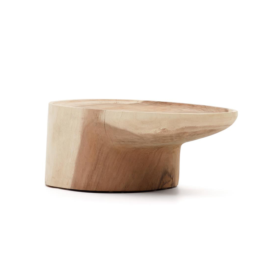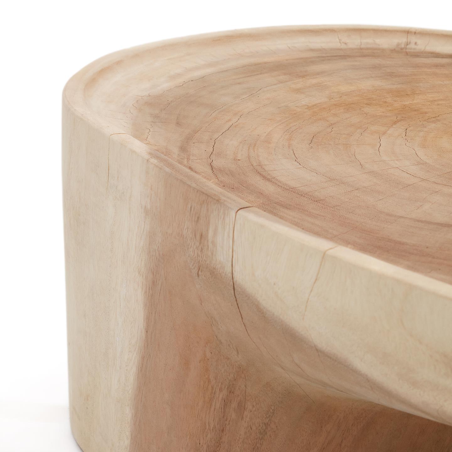 - Mesa de centro feita à mão em madeira maciça de mungur com acabamento natural.