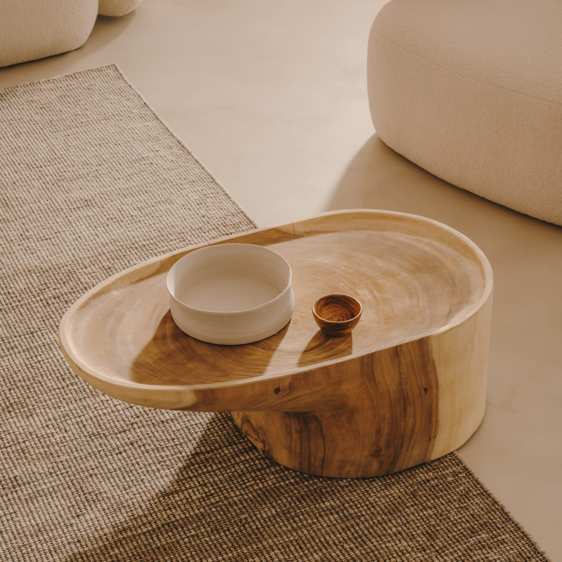 - A mesa Mossis, de linhas orgânicas e madeira mungur, é a peça que completa a sua sala.