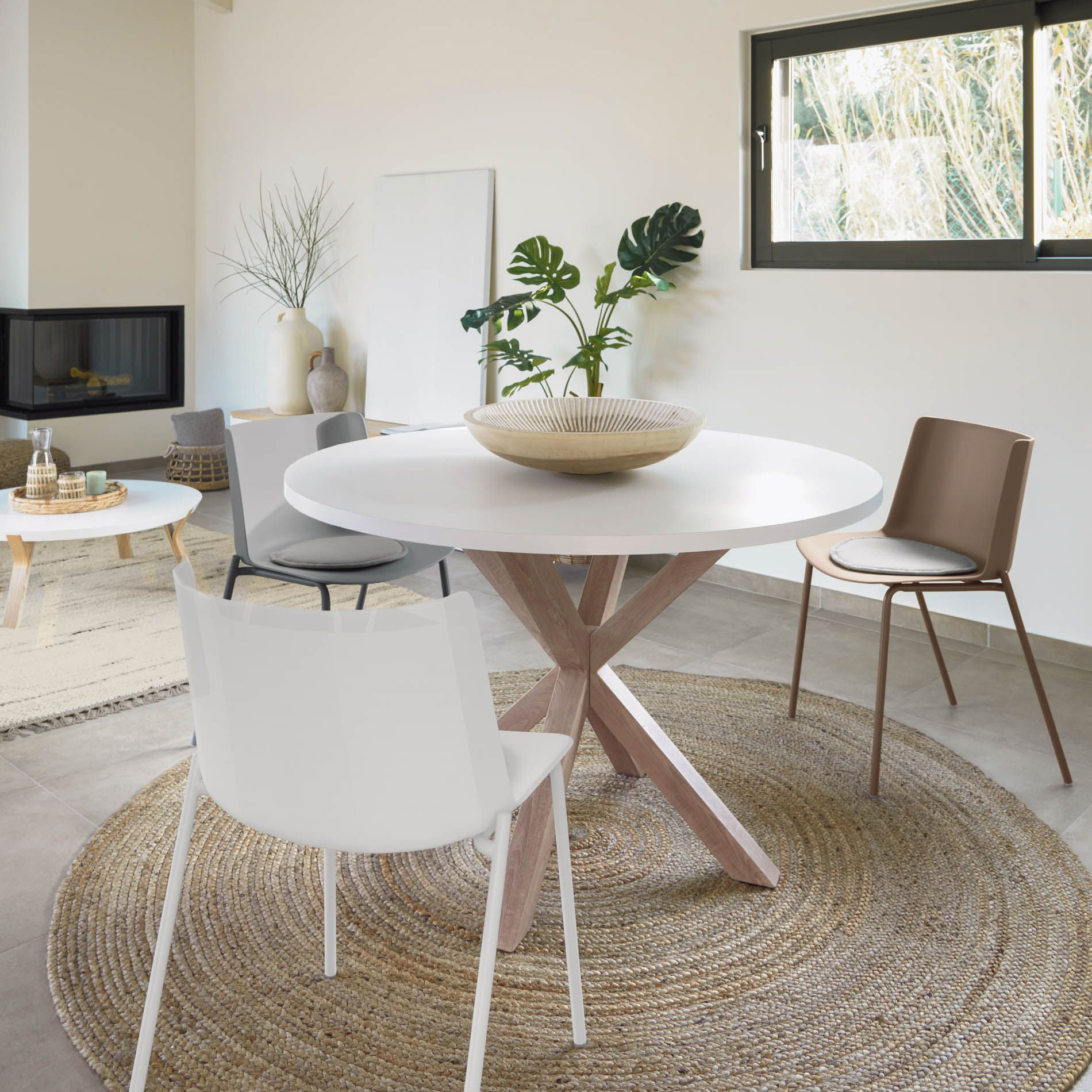 - Por ser redonda, esta mesa é ideal para pequenos espaços, com um tampo de Ø120 cm, poderá utilizá-la de forma cómoda.