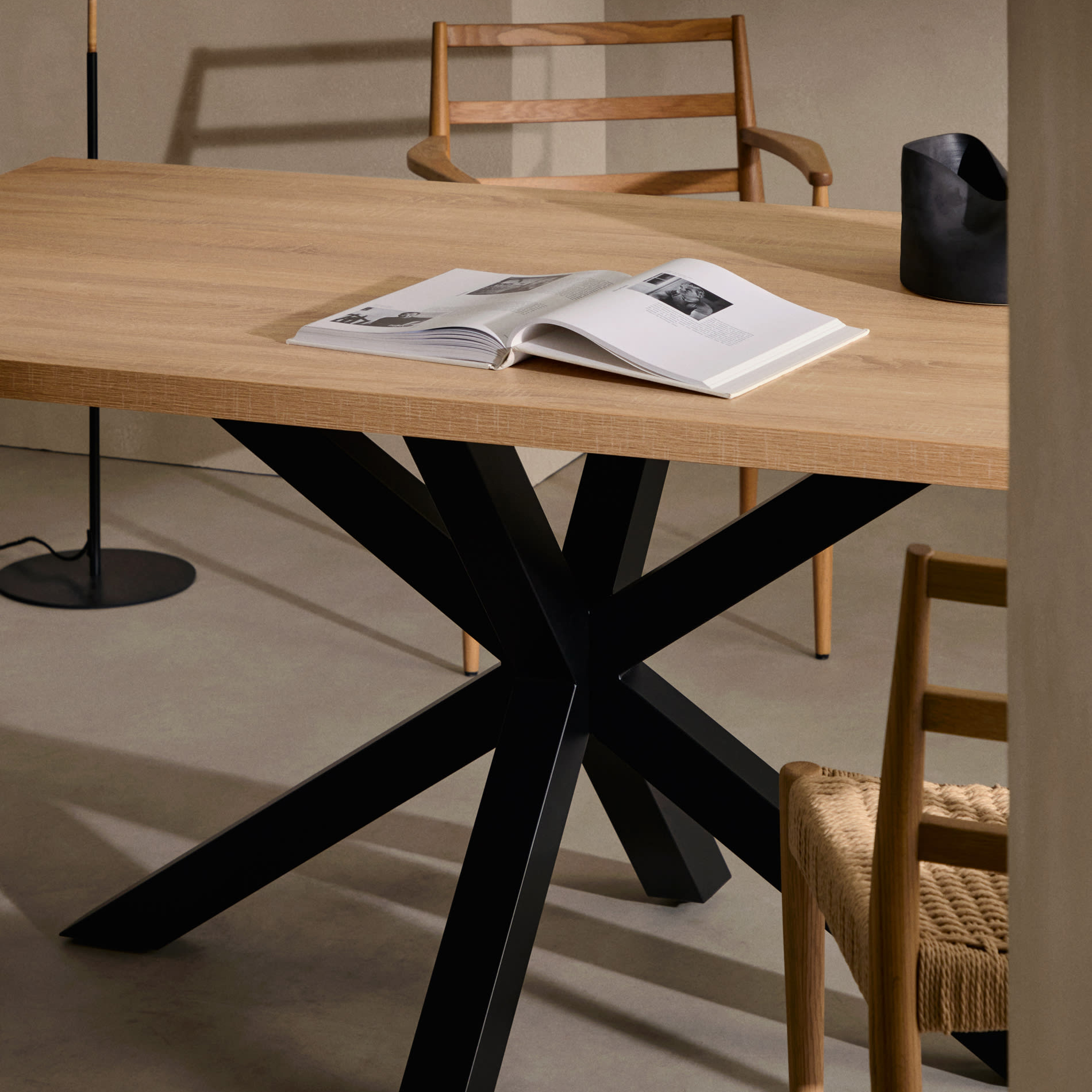 Mesa de jantar Arge, melamina/metal, preto