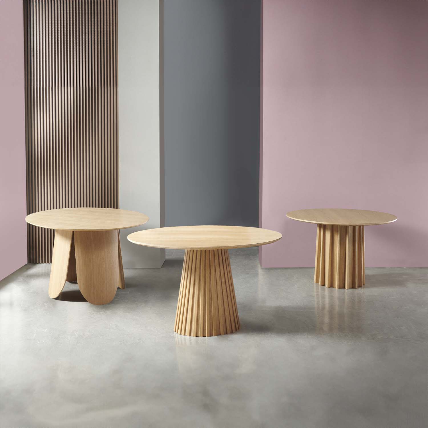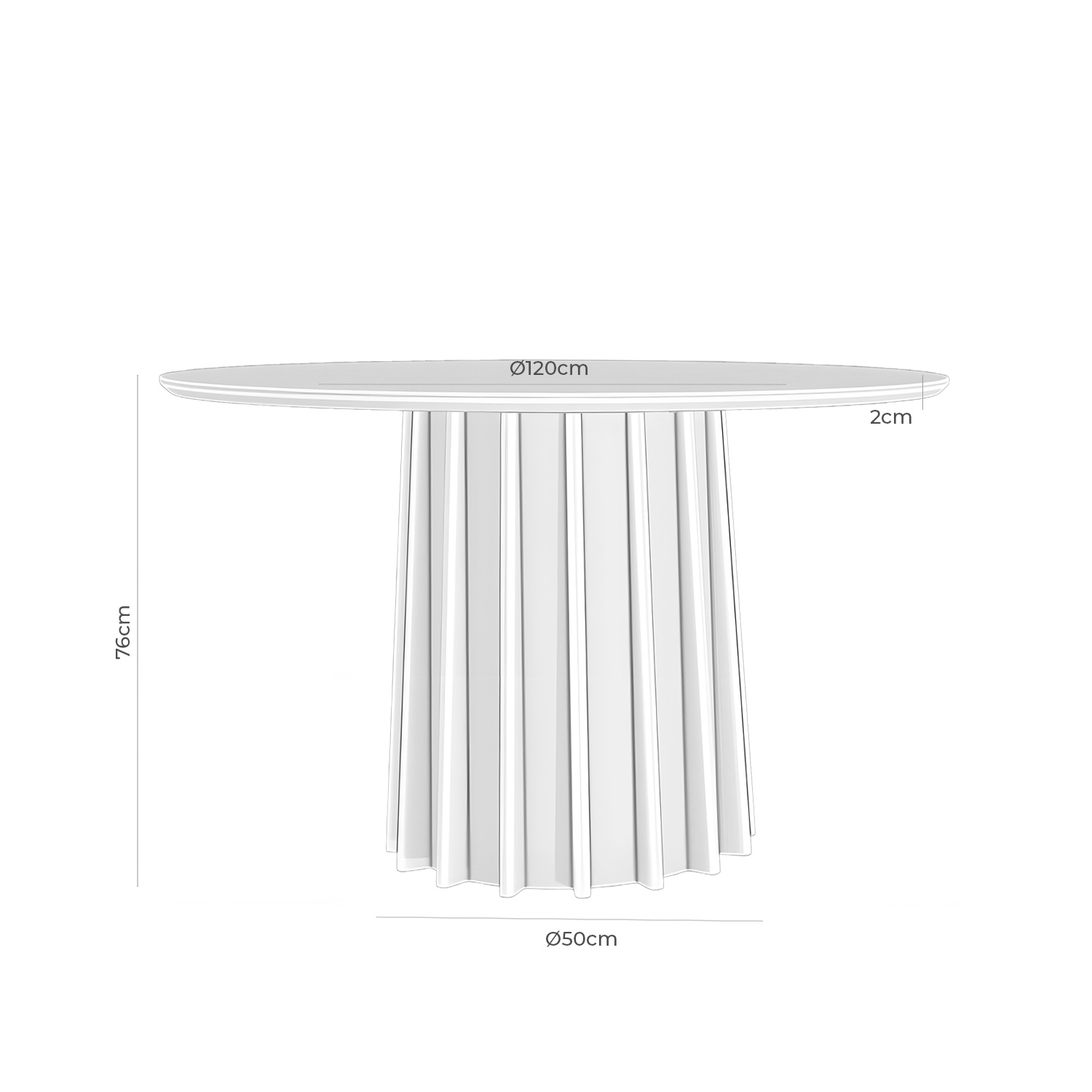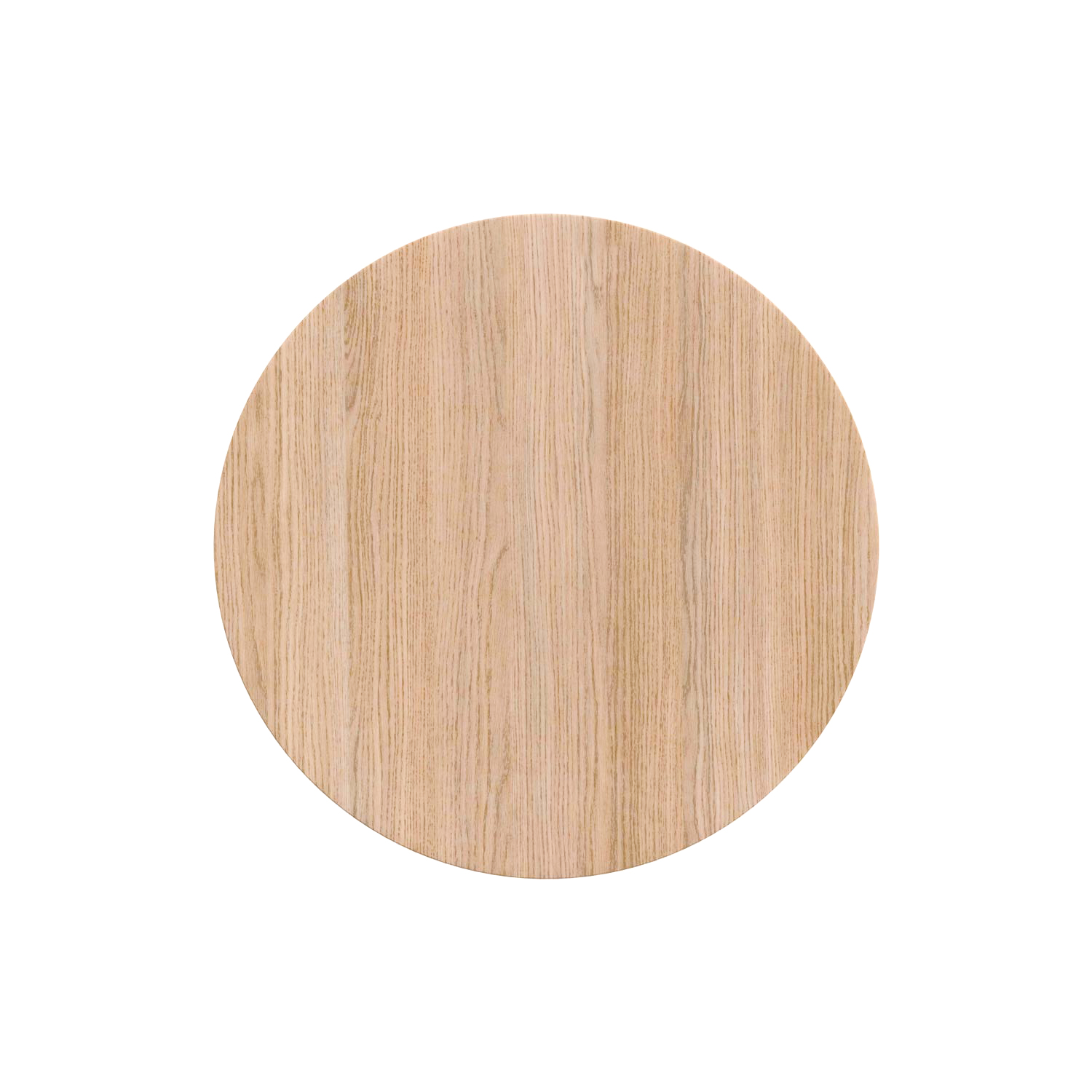 - Tampo redondo em chapa de carvalho com 2 cm de espessura.