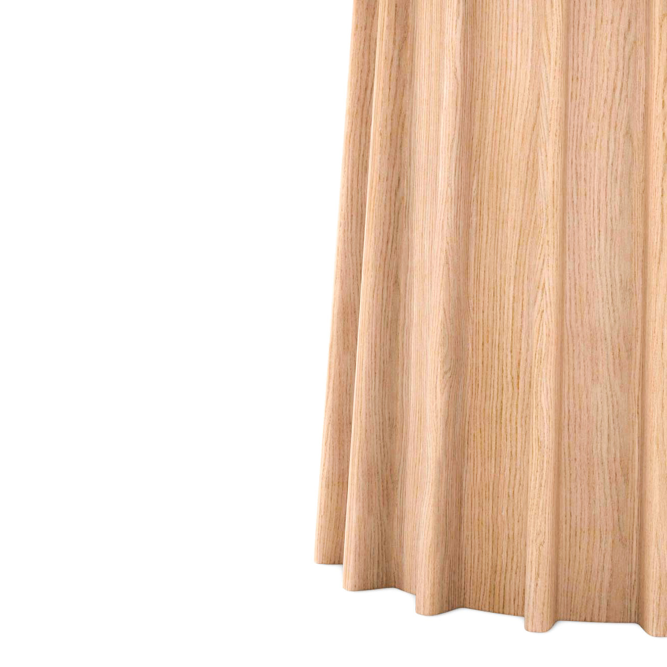 - A base é totalmente distinta, com dobras marcadas na madeira carvalho que lhe conferem uma estética moderna e sofisticada.