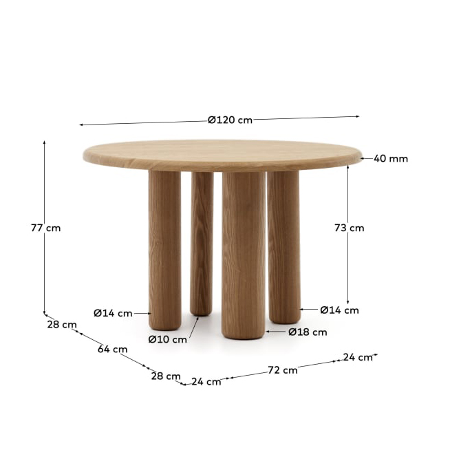 Mesa de jantar Malin, madeira de freixo, Ø120x77