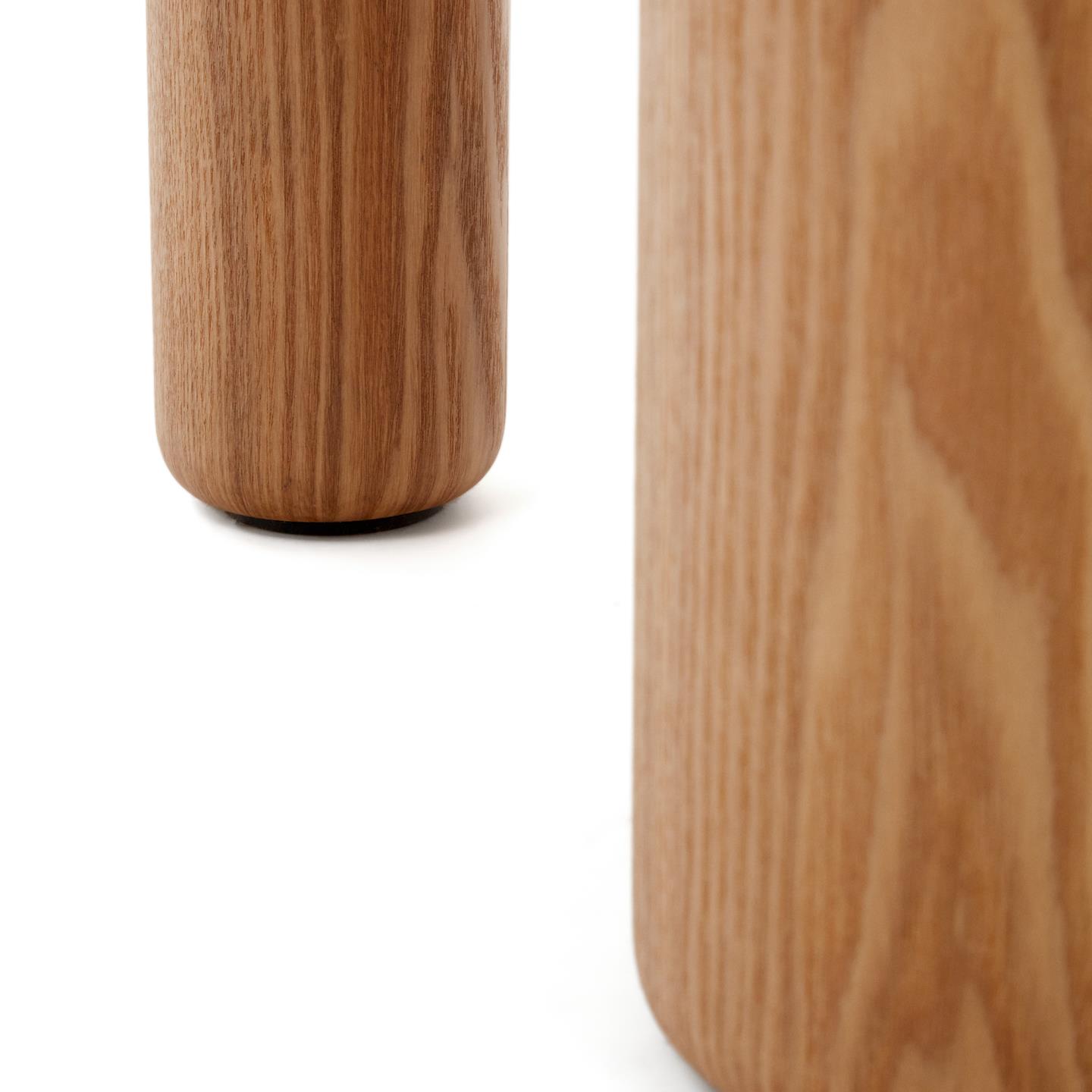 - Pernas de diferentes diâmetros em madeira de freixo.