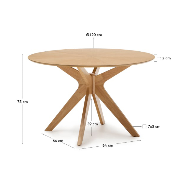 Mesa de jantar Namin, madeira carvalho, Ø120x75