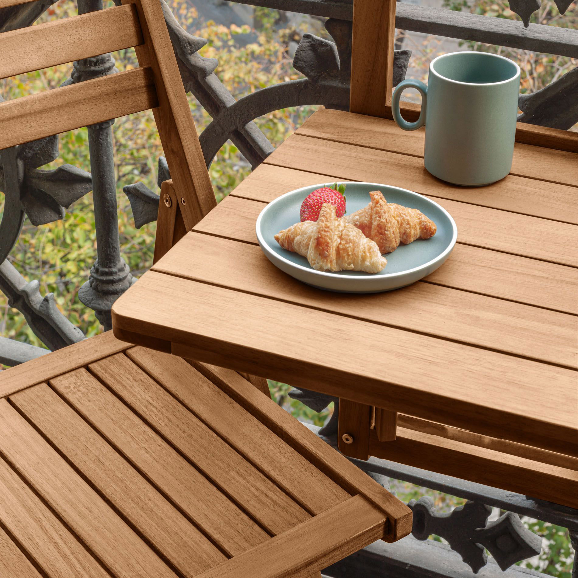 - Agora pode desfrutar da sua por mais pequena que seja graças à mesa dobrável Amarili em madeira maciça de acácia sustentável.