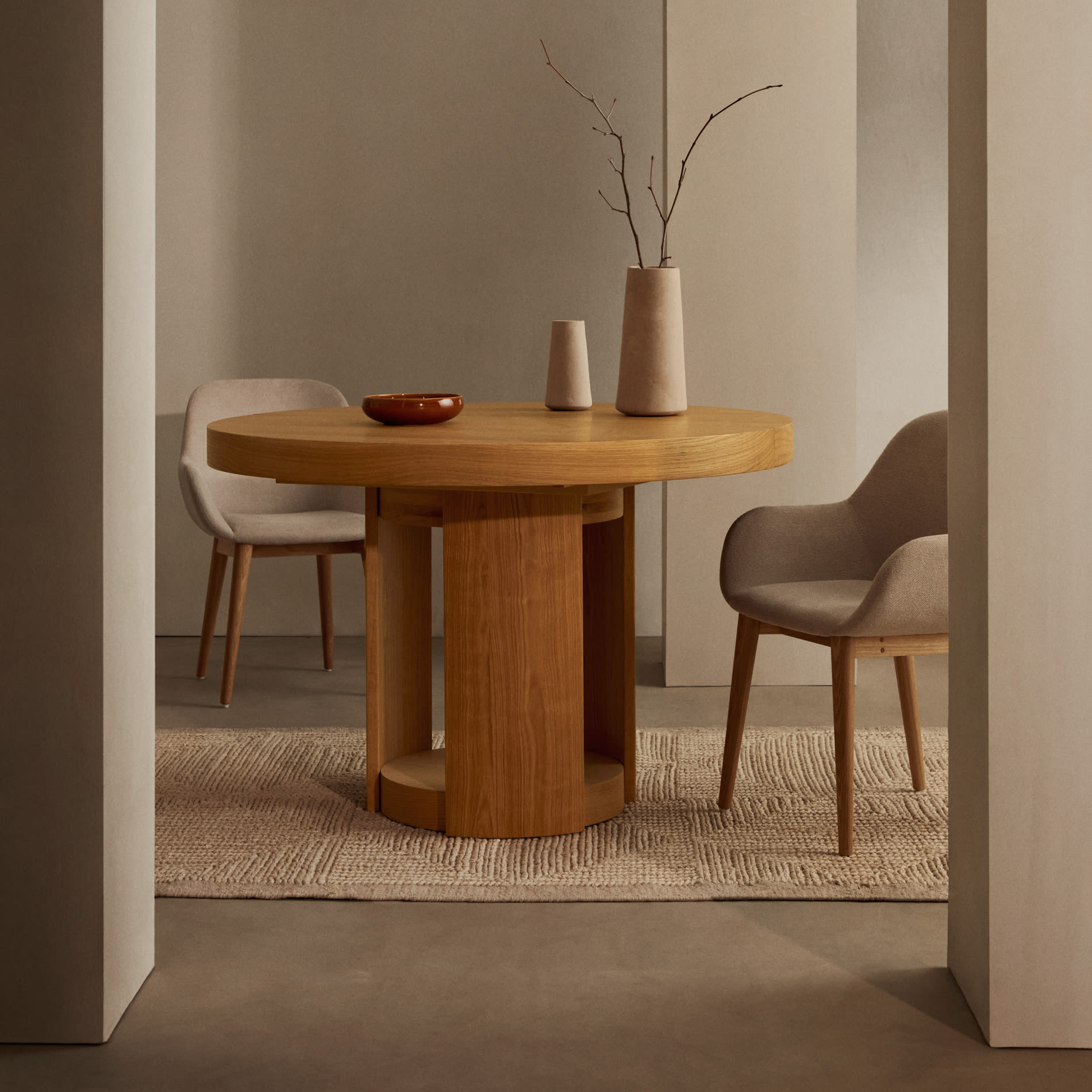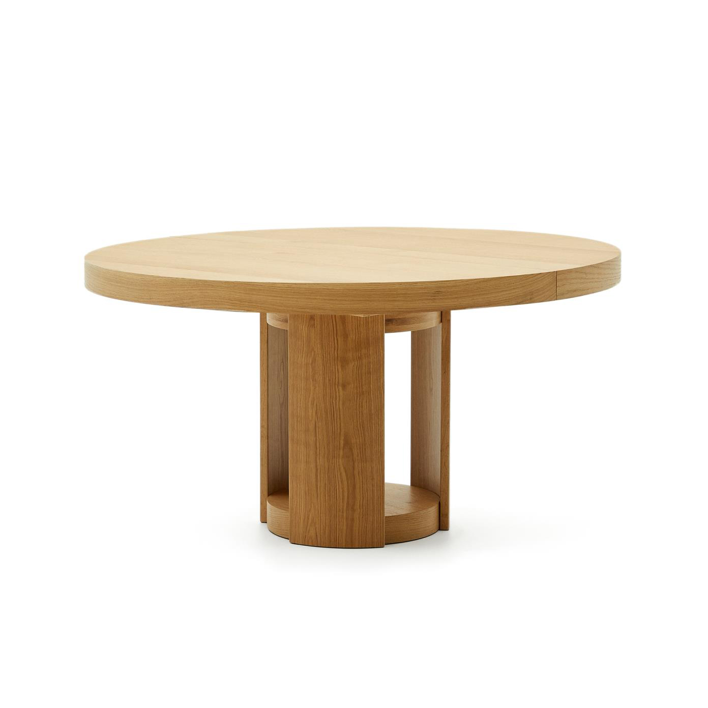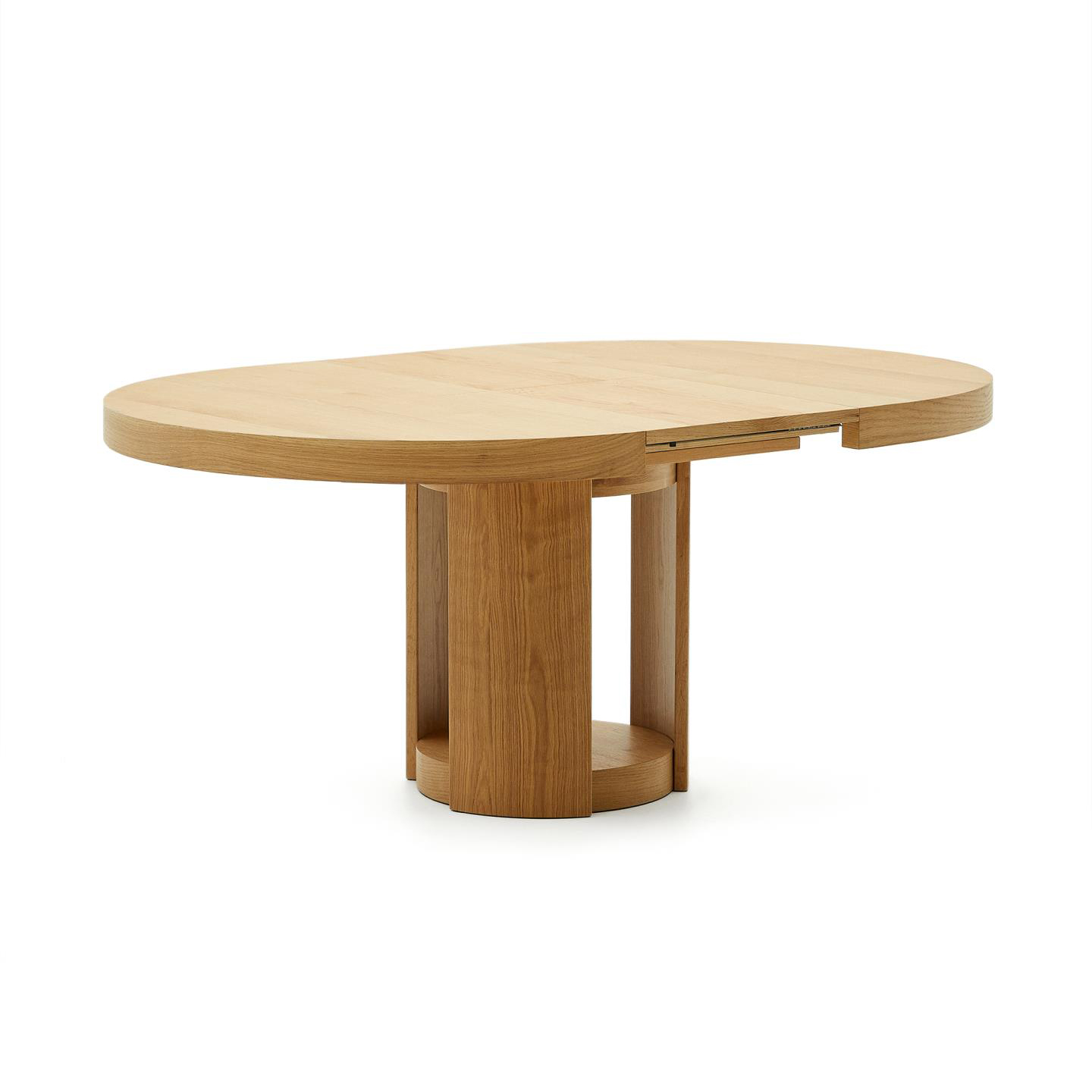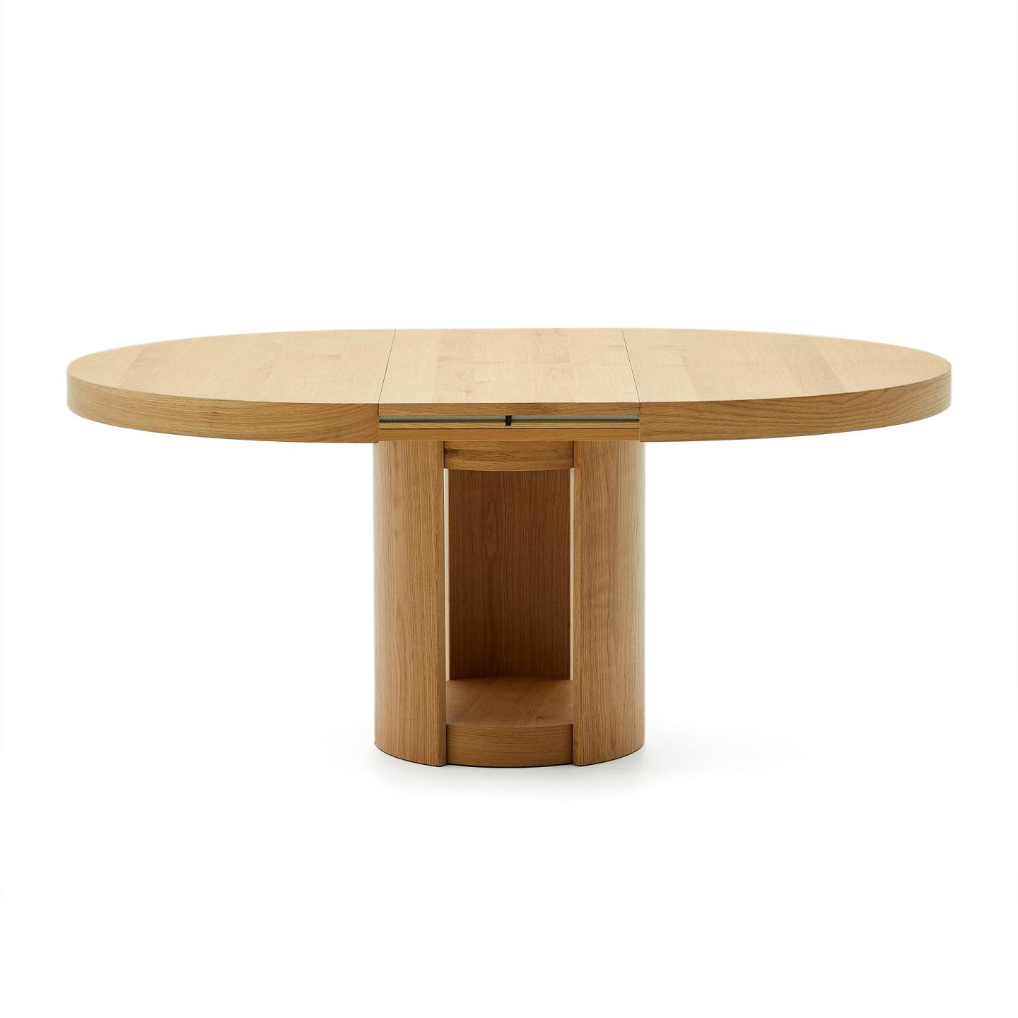 - Tampo extensível em chapa de carvalho com acabamento natural.