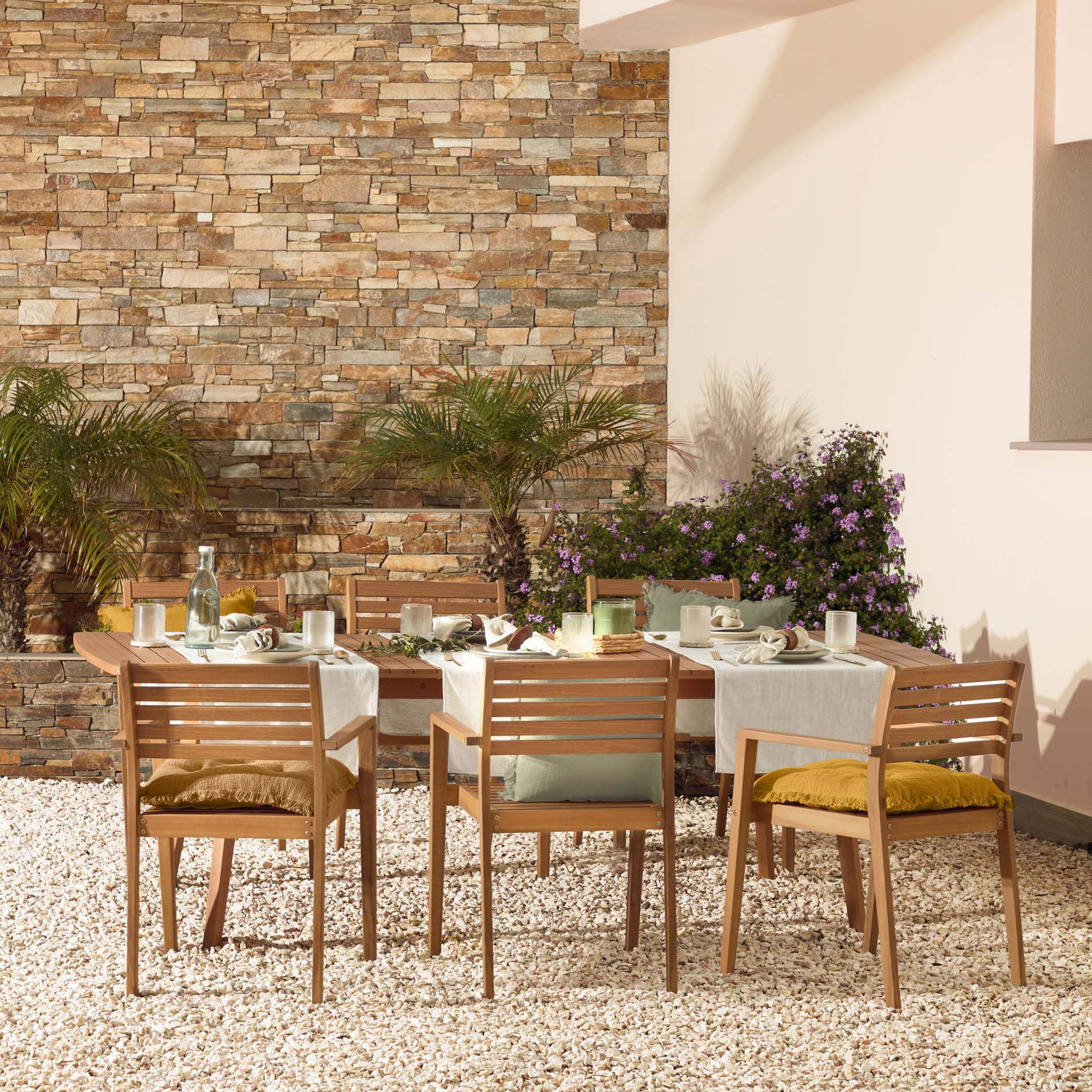 - A coleção Hanz tem disponível, mesa extensível e cadeiras de exterior.
