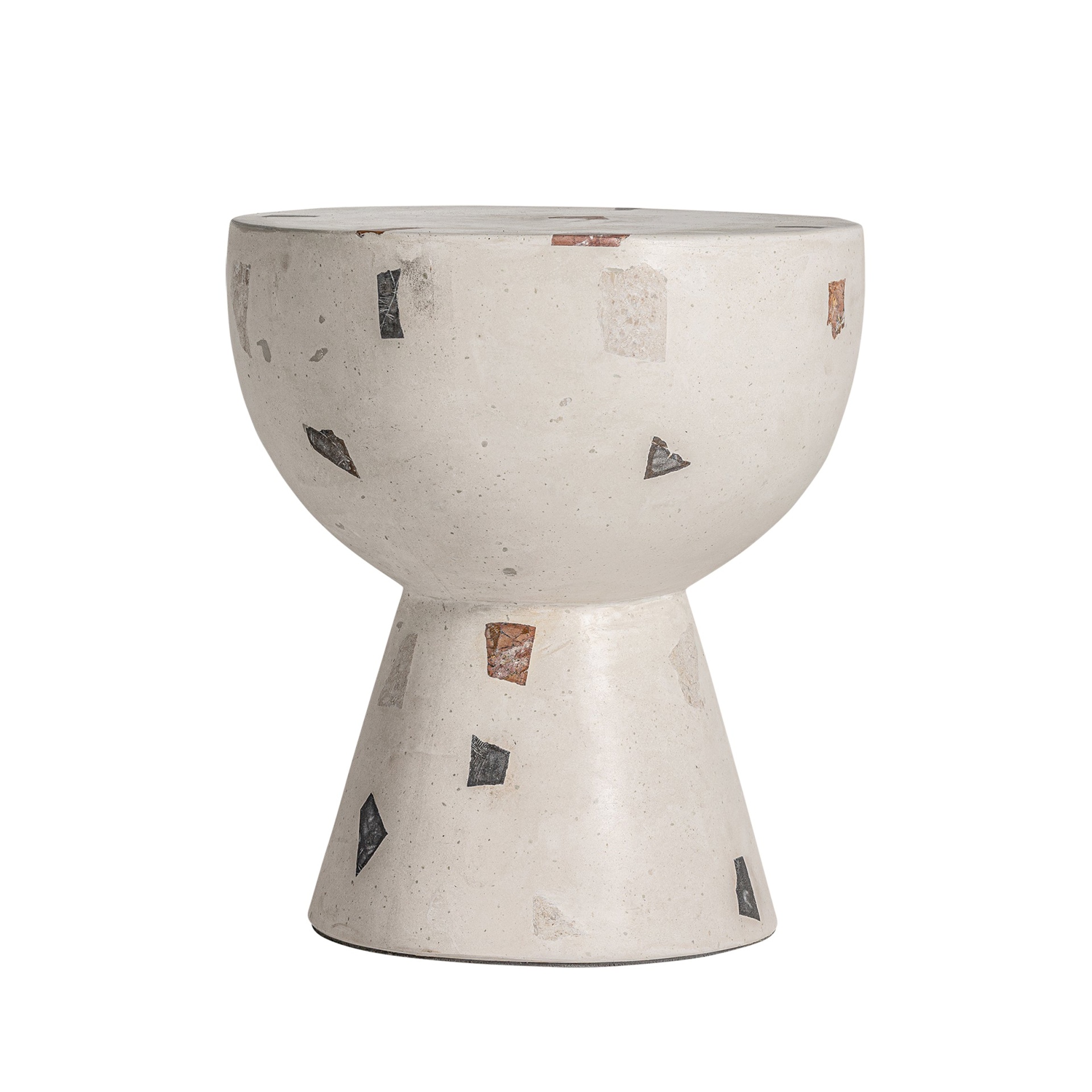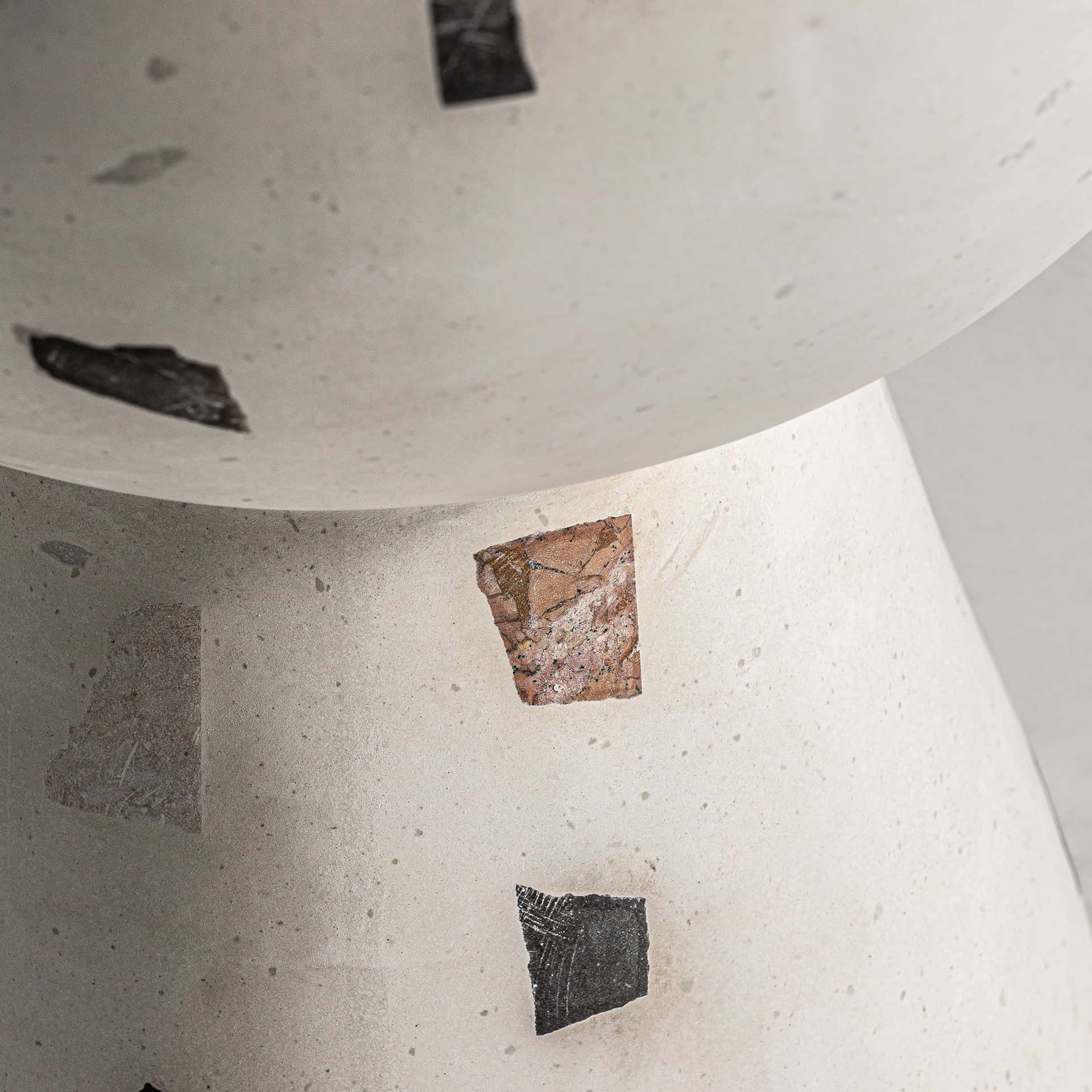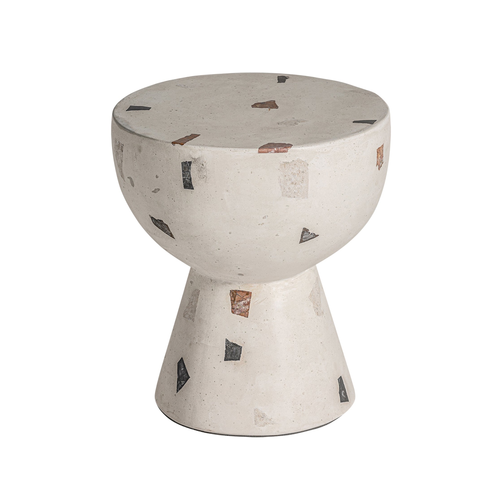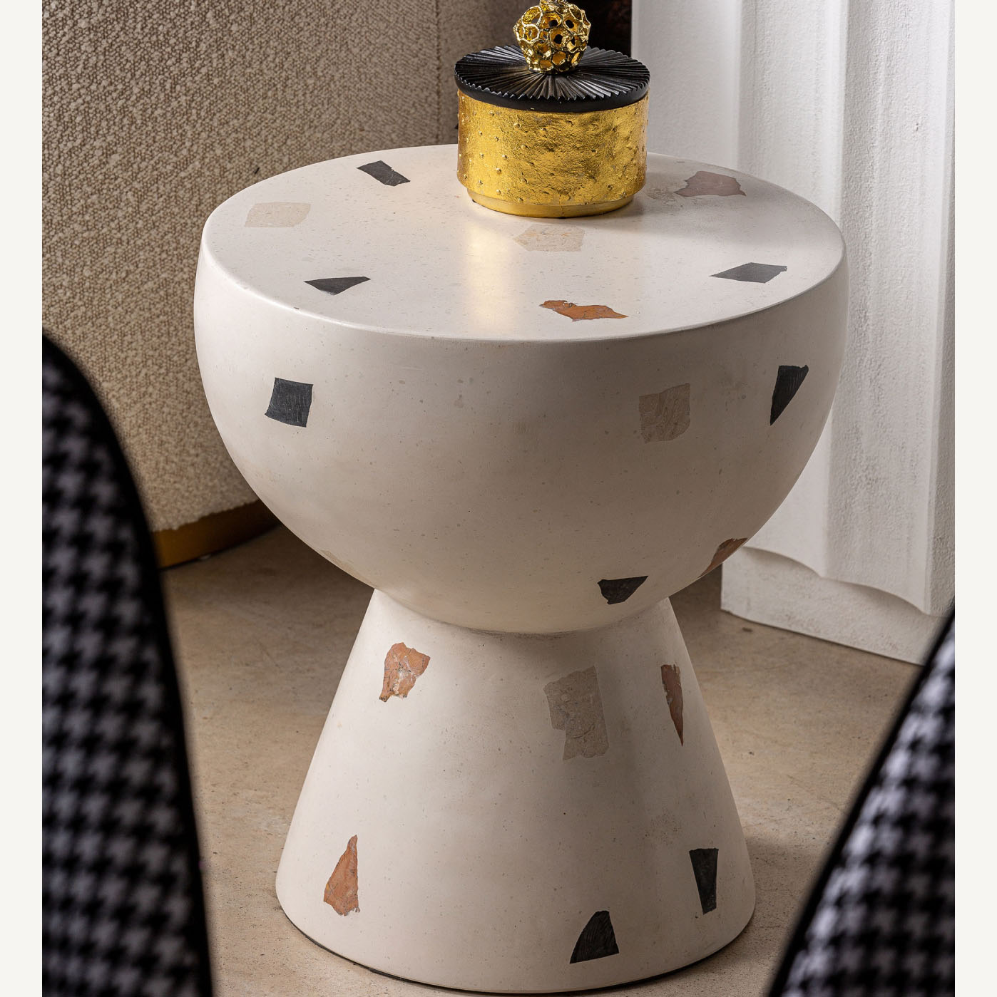 - A mesa de apoio Massa da Vical Home é uma peça de mobiliário que combina o design moderno e a elegância atemporal do terrazzo.