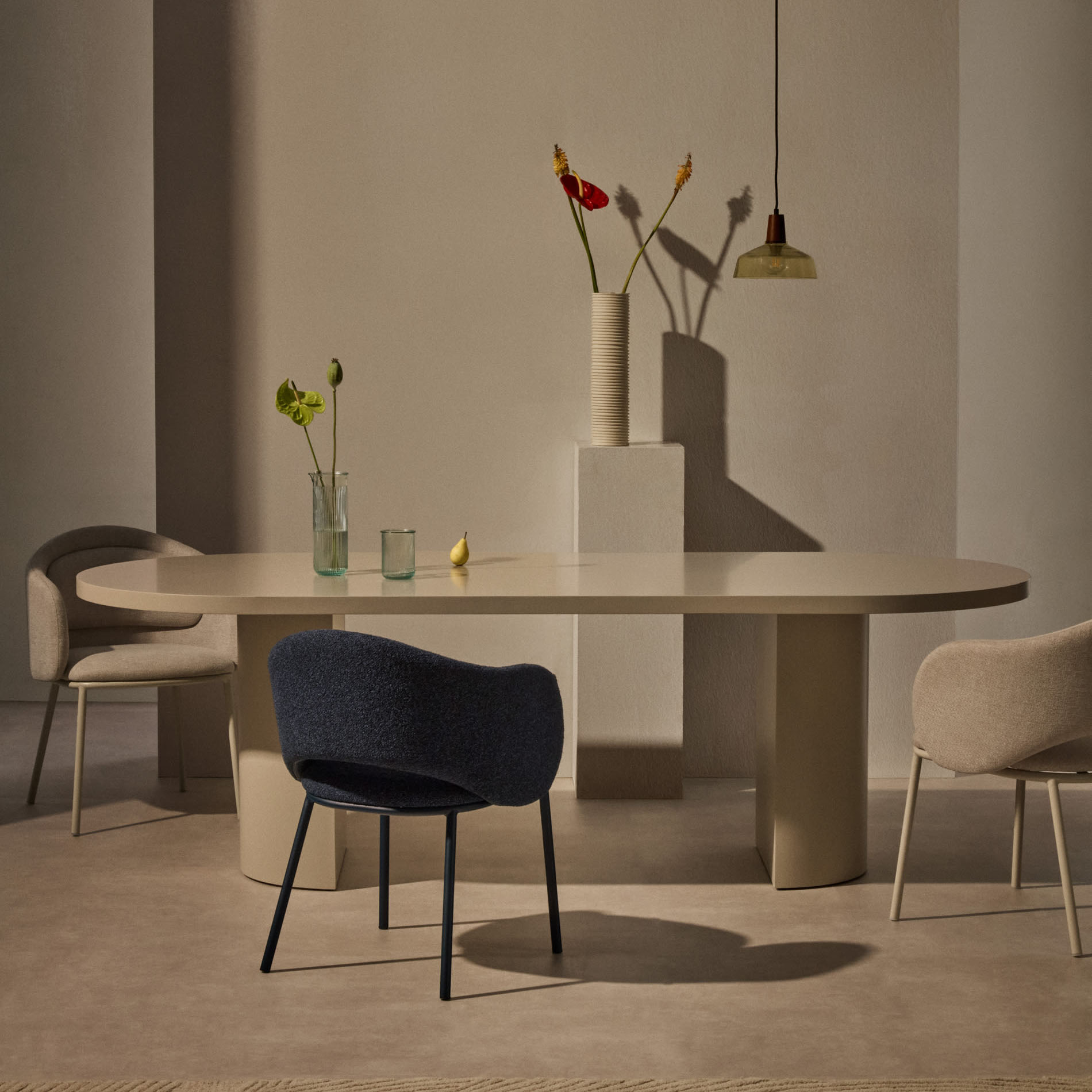 - A mesa Nely tem as pernas semicirculares que permite montá-las em duas posições, personalizando assim o seu próprio design.