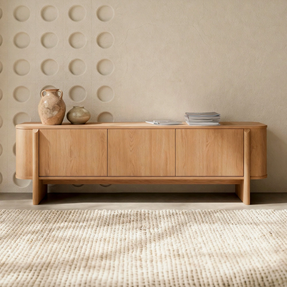 - Com um perfil baixo e linhas contínuas, o móvel TV da coleção Sydney combina funcionalidade e presença visual equilibrada na sala de estar.
