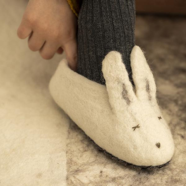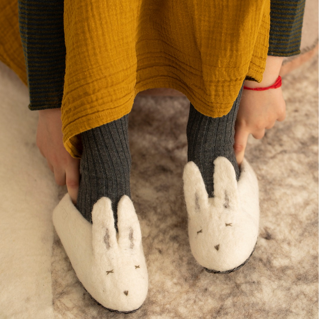 • Graças às propriedades termorreguladoras da lã, os nossos sapatinhos de coelho podem ser usados ​​durante todo o ano.
