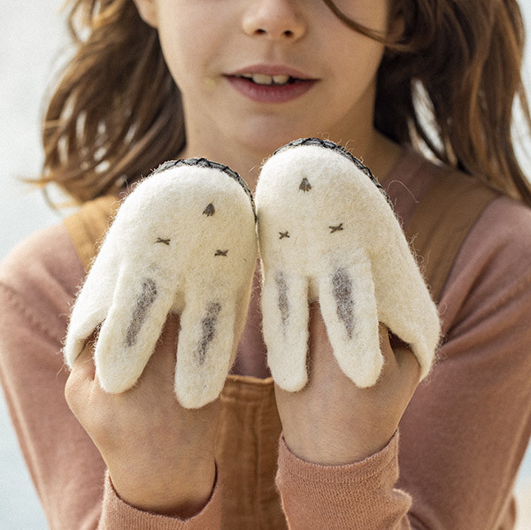 • luvas infantis brancas com orelhas de coelho