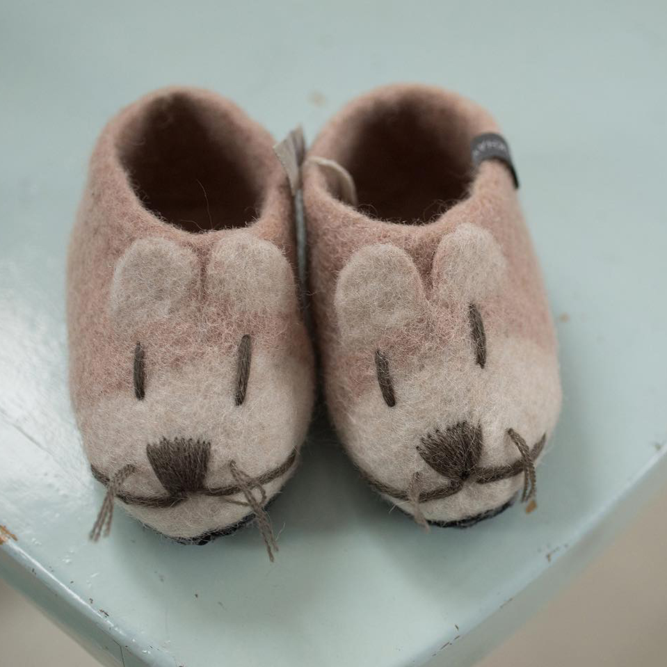 Graças às propriedades termorreguladoras da lã, os nossos sapatinhos de coelho podem ser usados durante todo o ano.