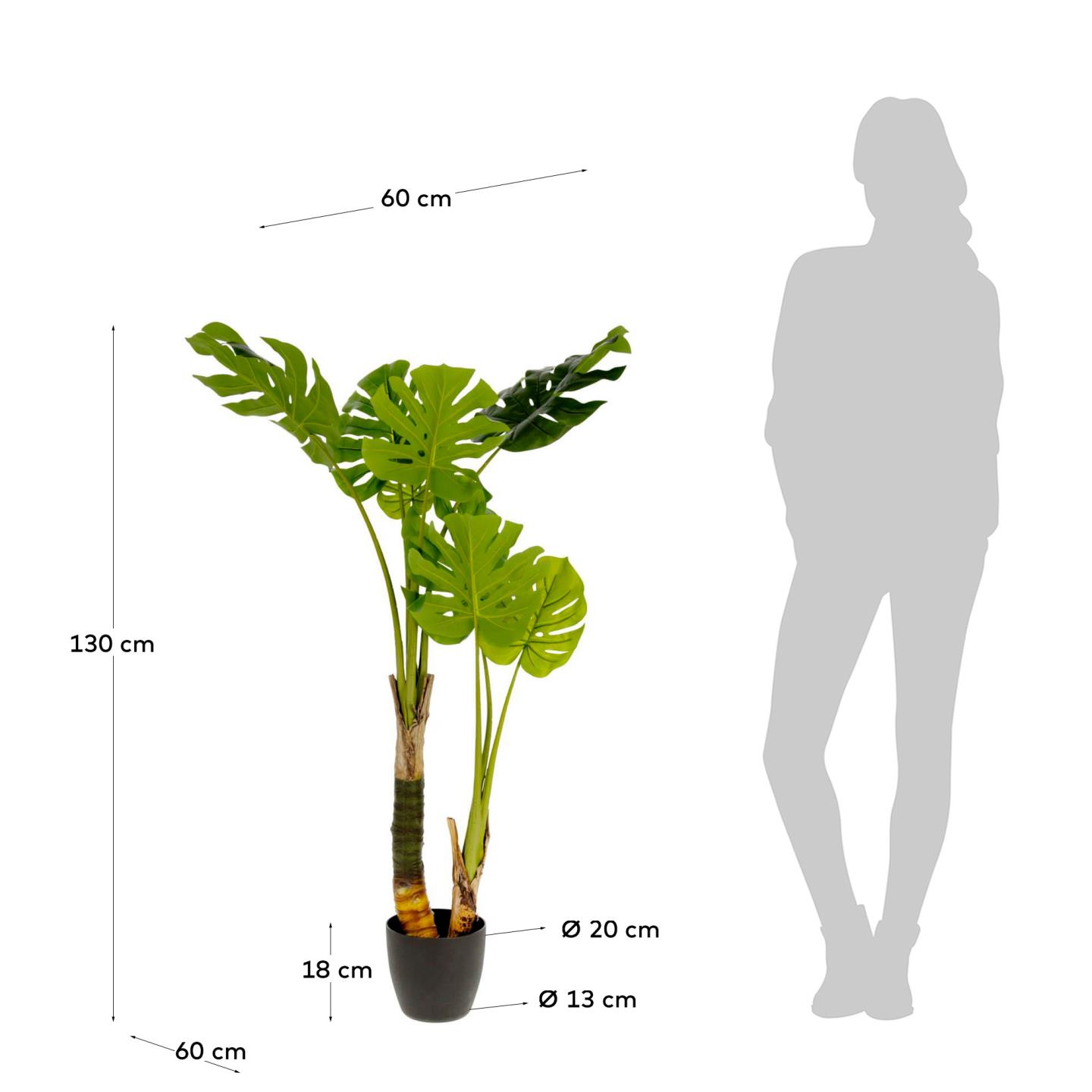 Planta artificial Costela-de-Adão, 130cm 99,00 € Desconto de %. IVA incluído. Partilhar Comprar Contactar SKU: JG4AA5688 Planta decorativa Costela-de-Adão, 130 cm de altura e vaso preto. Até os ramos no tronco vão-lhe parecer reais. Um complemento perfeito para dar cor e frescura aos seus interiores e exteriores cobertos. DIMENSÕES: Comp: 60cm Larg: 60cm Alt: 130cm CUIDADOS: Recomendamos que não seja exposta à luz solar direta. Retirar o pó com um espanador. Tags exterior ENTREGA GRÁTIS C/MARCAÇÃO PRÉVIA PRAZO 2 A 3 SEMANAS Características